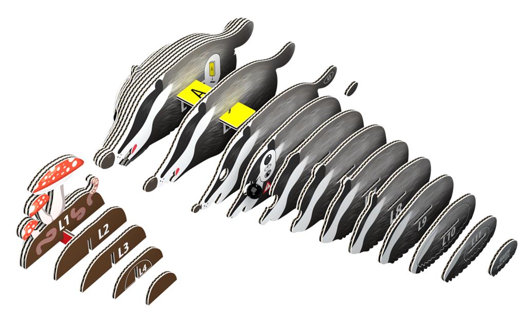 Eugy 3D Modèle: ANIMAL SAUVAGE / BLAIREAU 9,4x3,7x4,1cm, en carton, en boîte, 6+