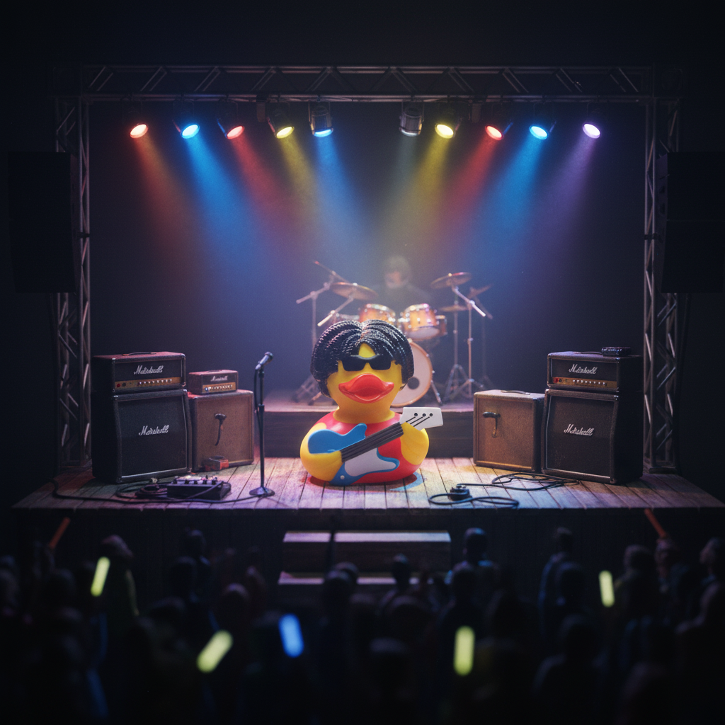 - 🎸 Autentický hudební styl: Kachna drží stylovou kytaru, která symbolizuje jeho lásku k rocku a reggae vibracím.