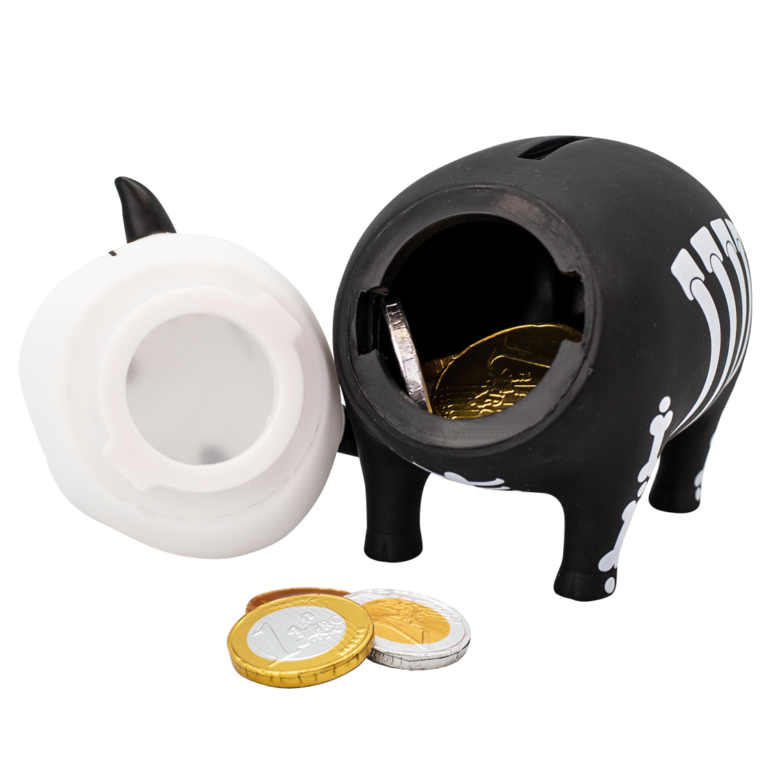 S odhalenými kostmi je prasátko s kostlivcem děsivé prase, které uchovává mince fanoušků hororu v bezpečí. Protože děsí každého, kdo se dostane příliš blízko k jejím pokladům. Nový halloweenský kostým, výlet do hororového kina nebo dekorace na halloweenskou párty – tento kostlivec je po vašem boku pro všechny strašidelné projekty.