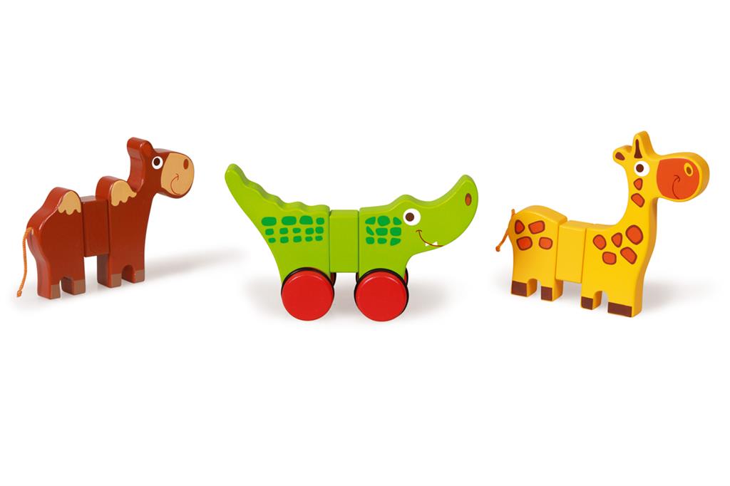 Disse venlige magnetiske dyr vil sørge for mange timers sjov. Saml hver del, sæt dyret på hjulene og afsted! Du kan også skabe de sjoveste kombinationer ved at sammensætte stykker af forskellige dyr. Dette legetøj stimulerer barnets motorik.