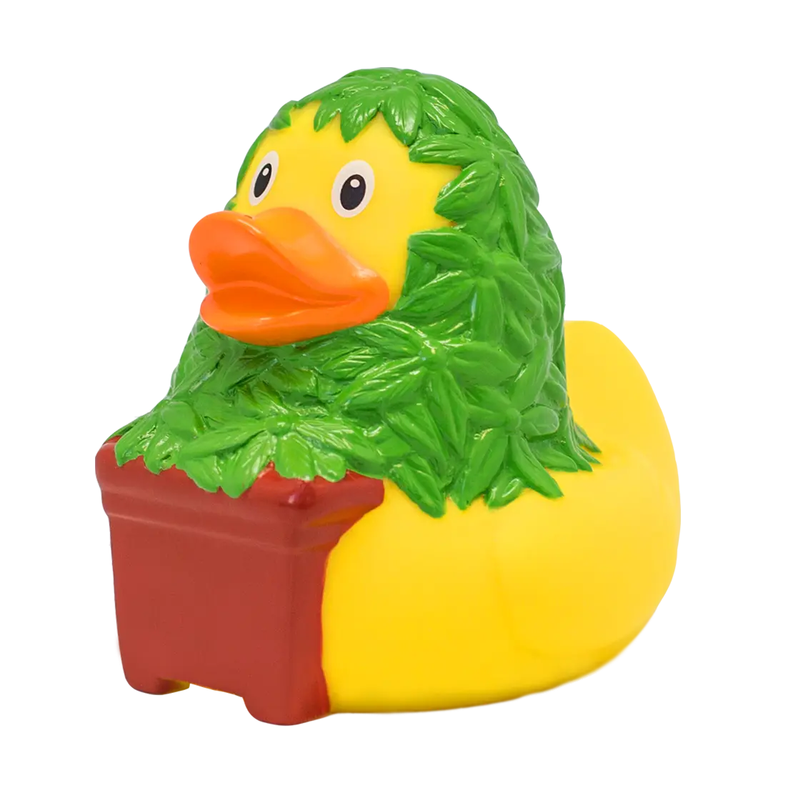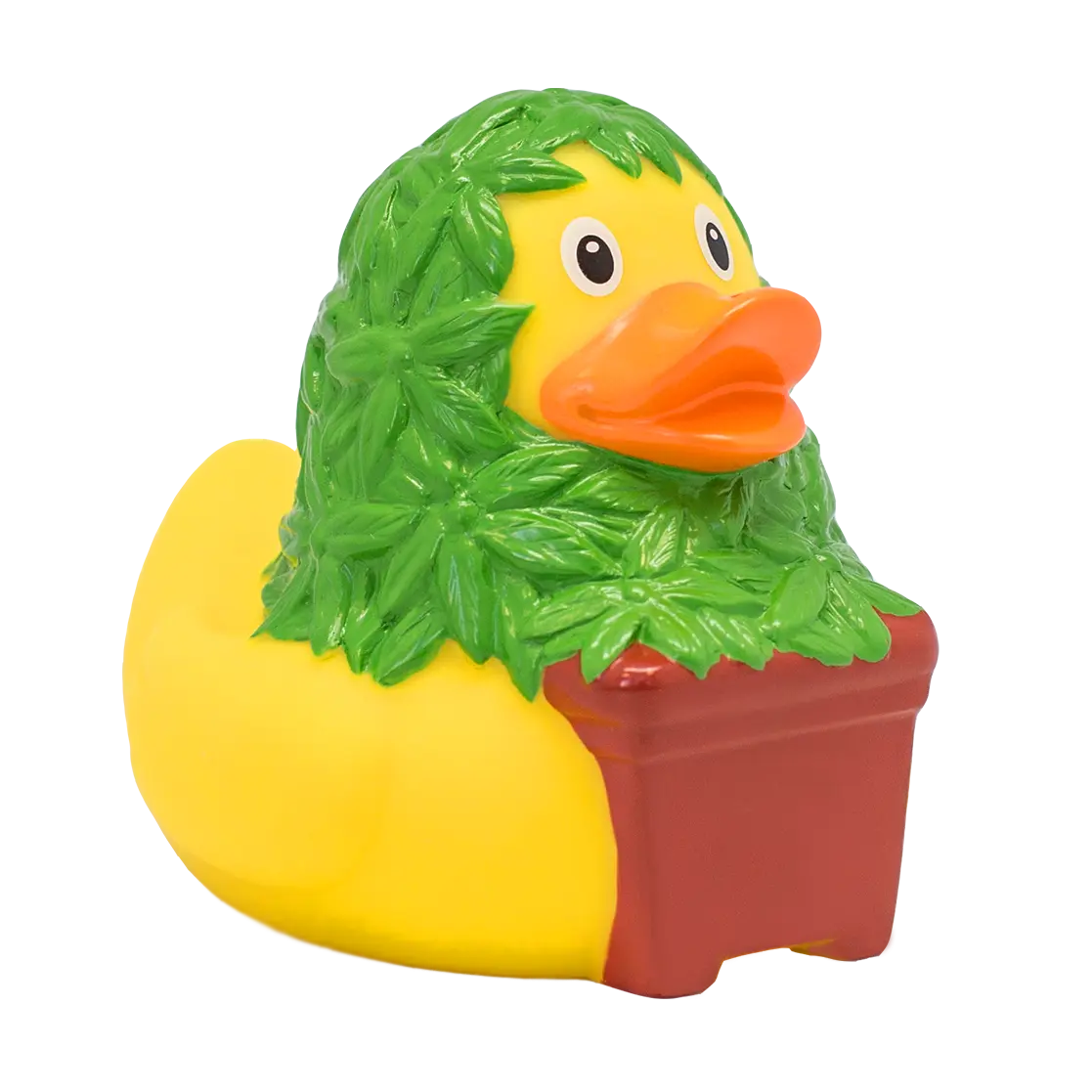 For ægte fans af lægeplanter er vores and med potte- og hampblade på hovedet et must-have!