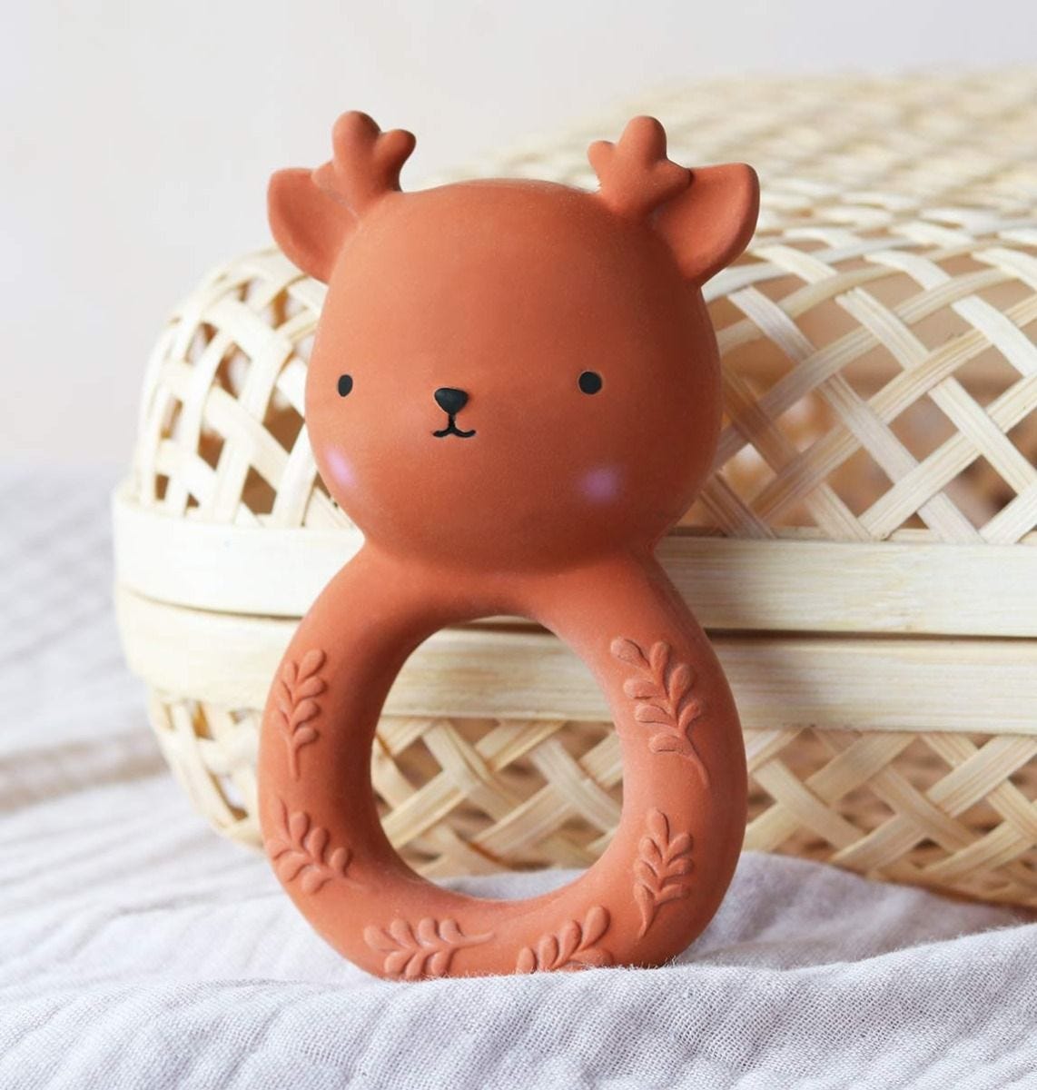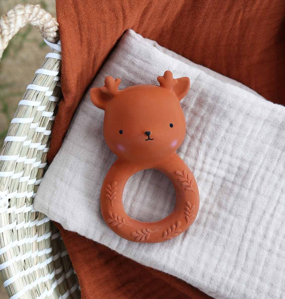 Er din babys tænder på vej ud? Så dette hjorteformede børnelegetøj er meget praktisk. Vores børnelegetøj er ideelt til at lindre dit lille barns ømme tandkød og gøre det lettere at få tænder. Dette dejlige børnelegetøj kommer i en dejlig æske med et vindue, hvilket gør det dejligt at give som gave til nybagte forældre.