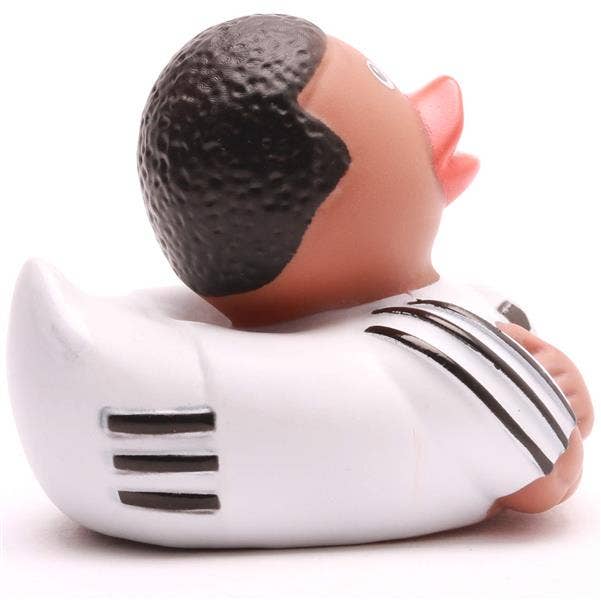 Le design détaillé fait de cette figurine un véritable accroche-regard. Les cheveux bouclés et texturés, les bras puissants et le look typique de sportif confèrent au canard de bain un caractère sympathique. En même temps, il reste bien sûr ce que nous aimons tous : un classique canard en plastique qui, avec son joyeux couinement, met de bonne humeur. La combinaison de couleurs claire de blanc, noir et tons de peau donne un aspect sportif et moderne, parfait pour les fans de football de tout âge.