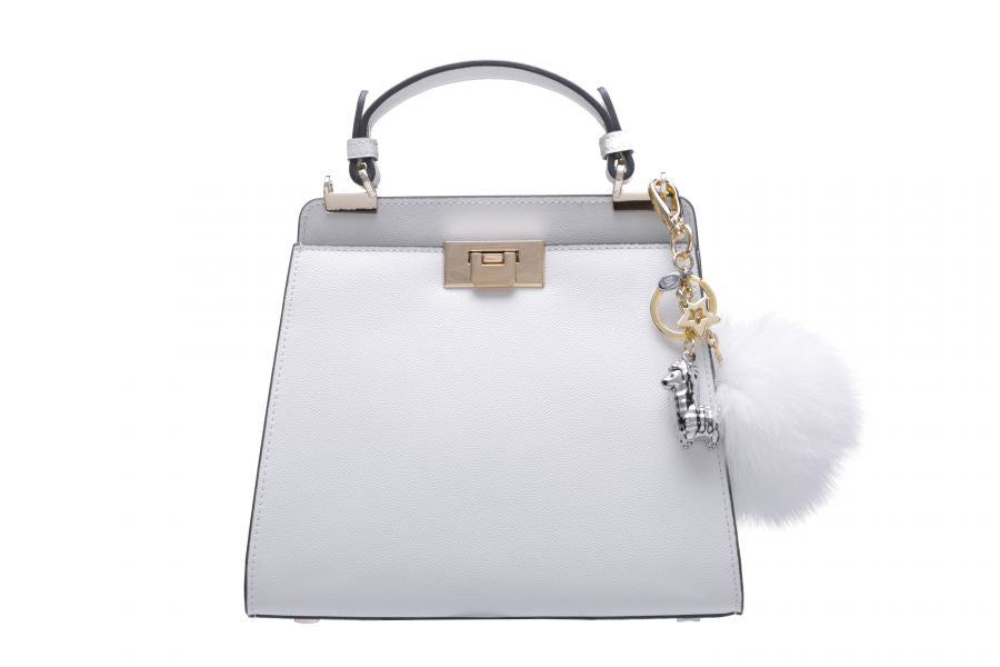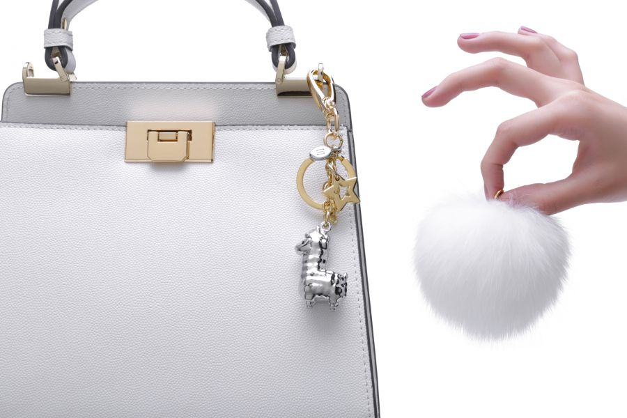 - Materiale: zinklegering + hvid PomPom (kunstigt rævehår)