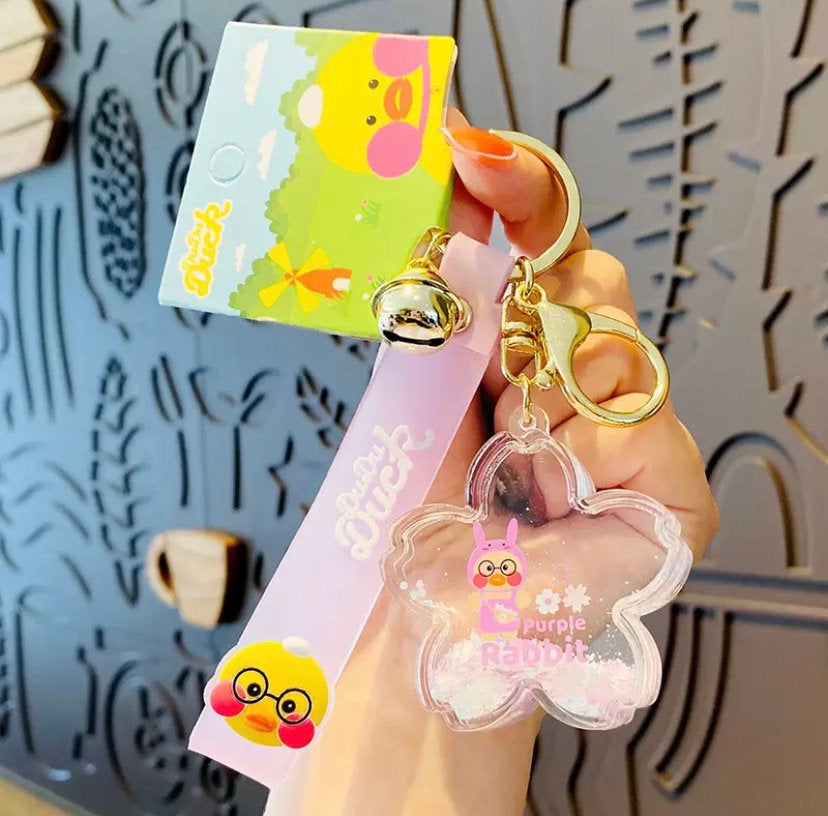DuDu Duck and nøglering forklædt som en kanin med kirsebærblomstformet flaske 🌸