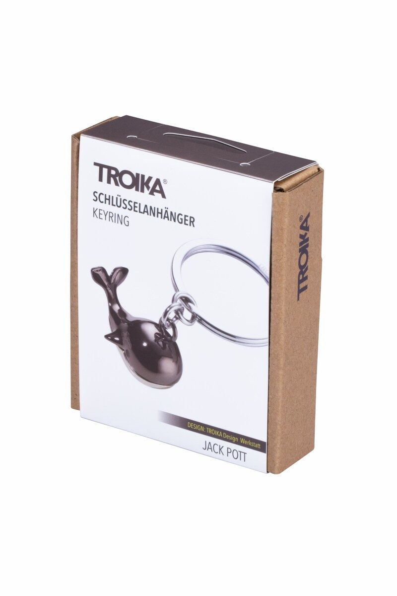 Det er svært at undslippe charmen fra det store havpattedyr. Når JACK POTT hænger på en nøglering, ved du med det samme, hvorfor alle smiler. Fremstillet af støbt metal i bronze og sølv.