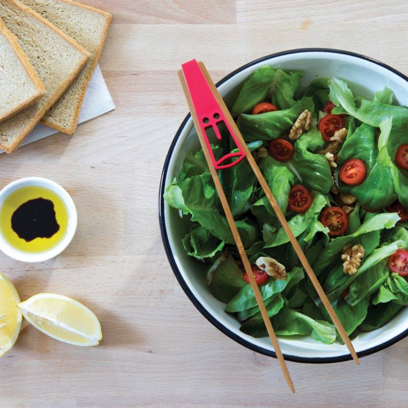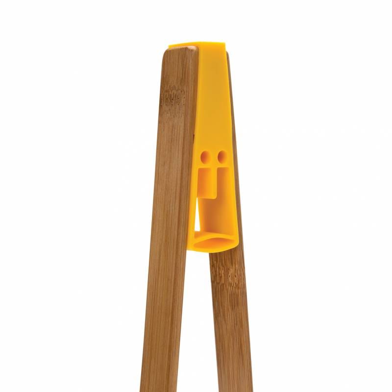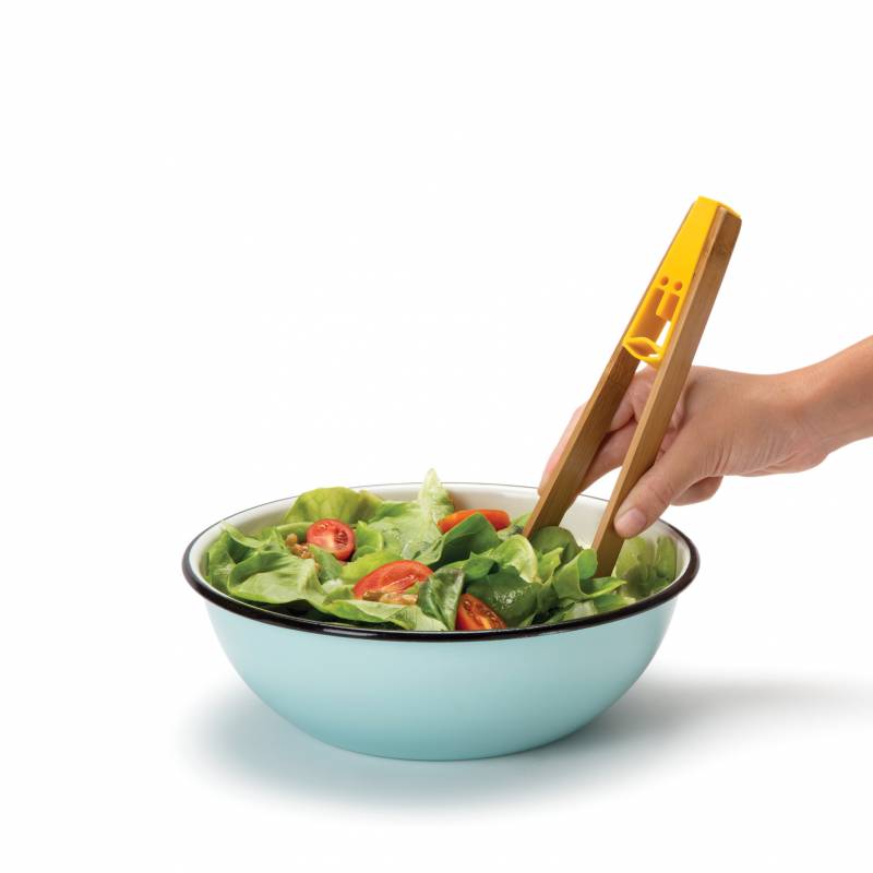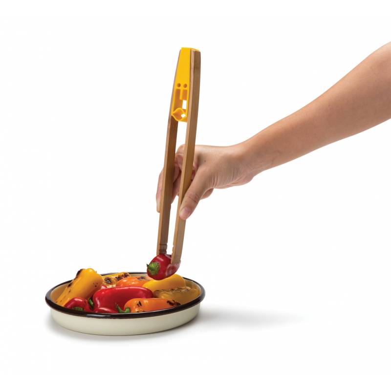 En sjov køkkentang! Til nem håndtering af mad under madlavning eller til servering af dine salater er denne King Tong bambus- og silikonetang ideel. Og hvad mere er, når det manipuleres, ser "ansigtet" ud til at starte en samtale... Få King Tong til at tale... I rødt eller gult. Tangen bliver hurtigt essentiel i dit køkken.