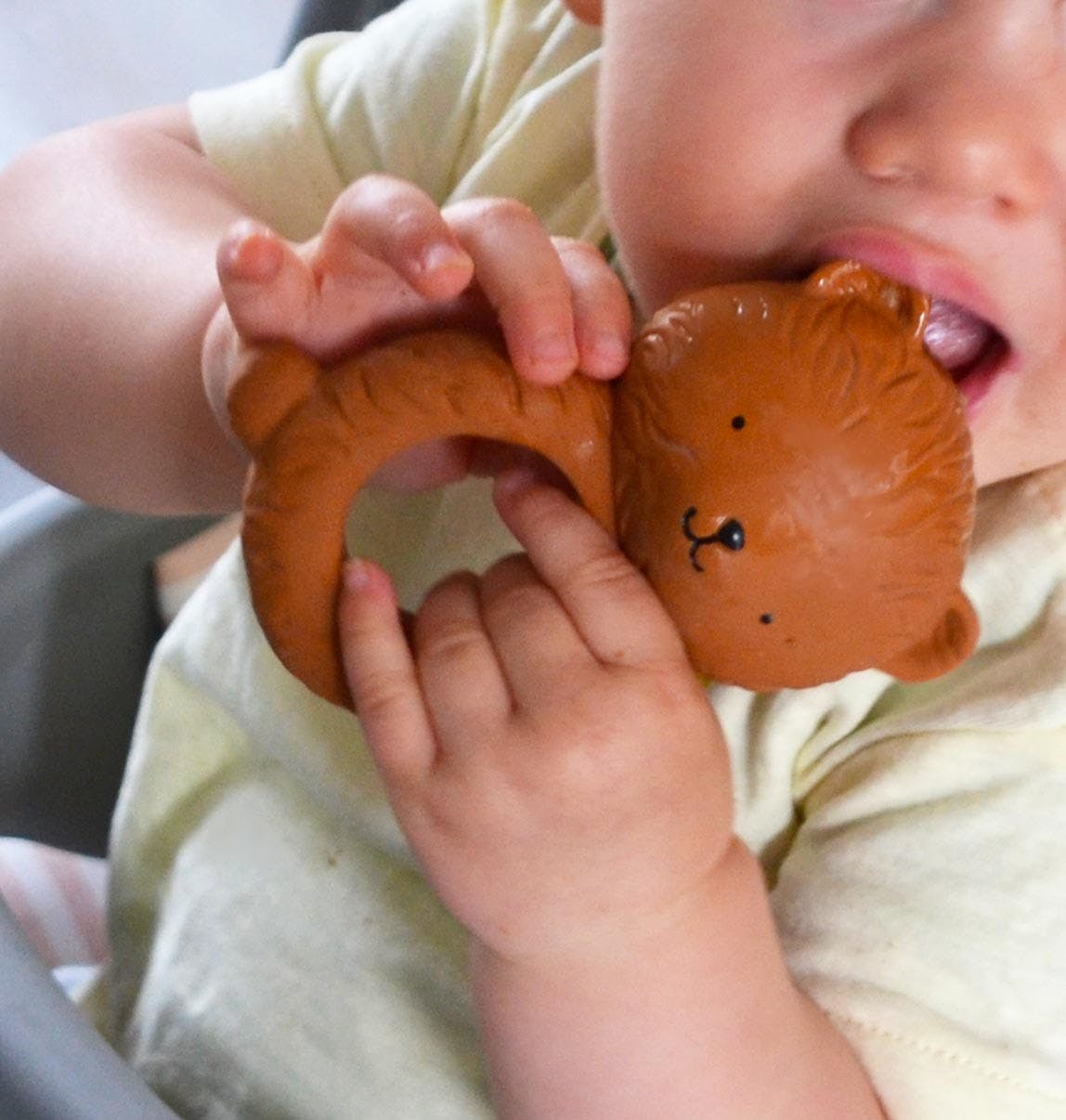 Får din lille tænder? Denne bjørneformede bider kan blive din bedste ven. Biringen er lavet af 100% naturgummi fra gummitræet, har en subtil duft og indeholder ikke skadelige stoffer. Perfekt til alle små, der oplever ubehag på grund af tandsmerter.