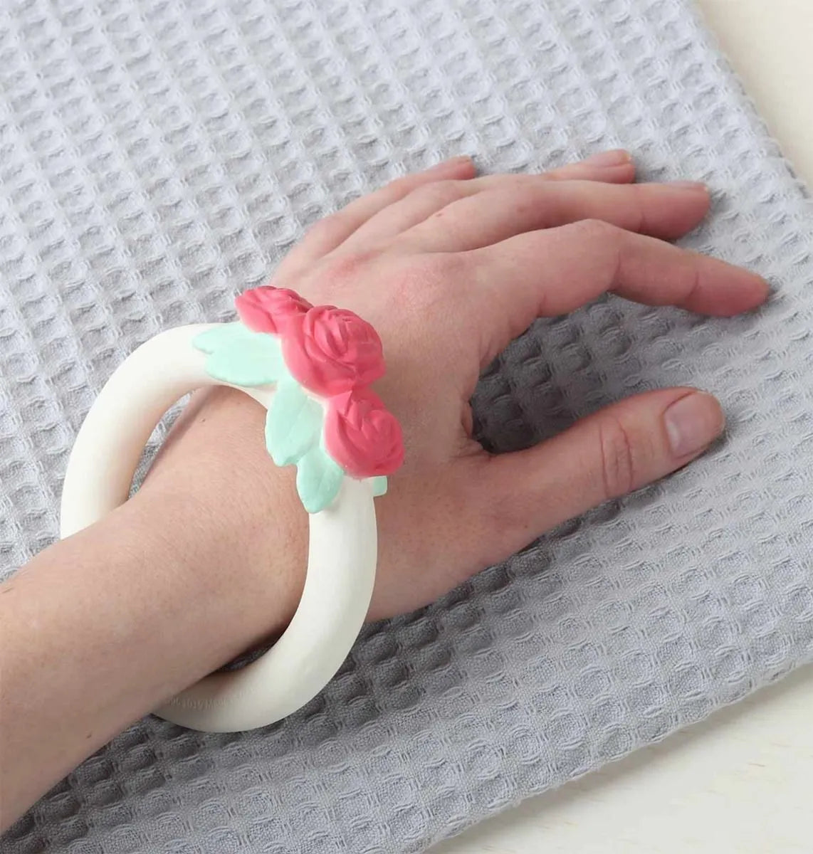 Får din lille tænder? Denne rosenknop-bidering er en perfekt løsning. Biringen er lavet med 100% naturgummi fra Hevea-træet, har en subtil duft og indeholder ikke skadelige stoffer. Perfekt til enhver baby eller småbørn, der oplever ubehag ved at få tænder.