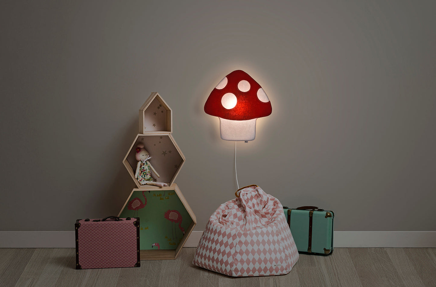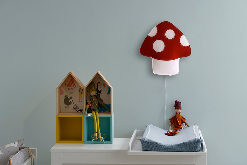 En anden væglampe, designet af Buokids, med en skovsvamp, som sandsynligvis bruges til at huse nisser. Leveres med LED inkluderet.