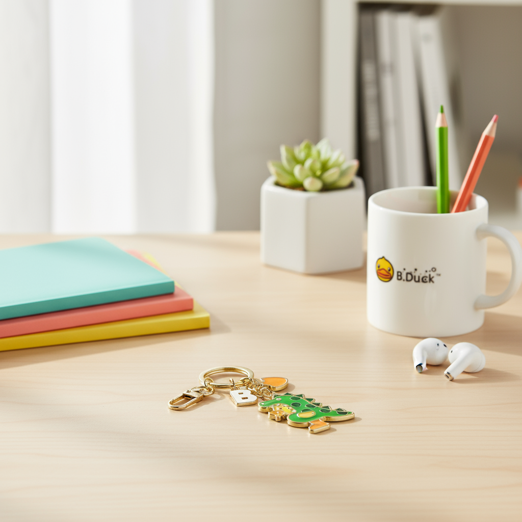 Bduck Schlüsselanhänger aus Metall mit Dinosaurier-Ente
