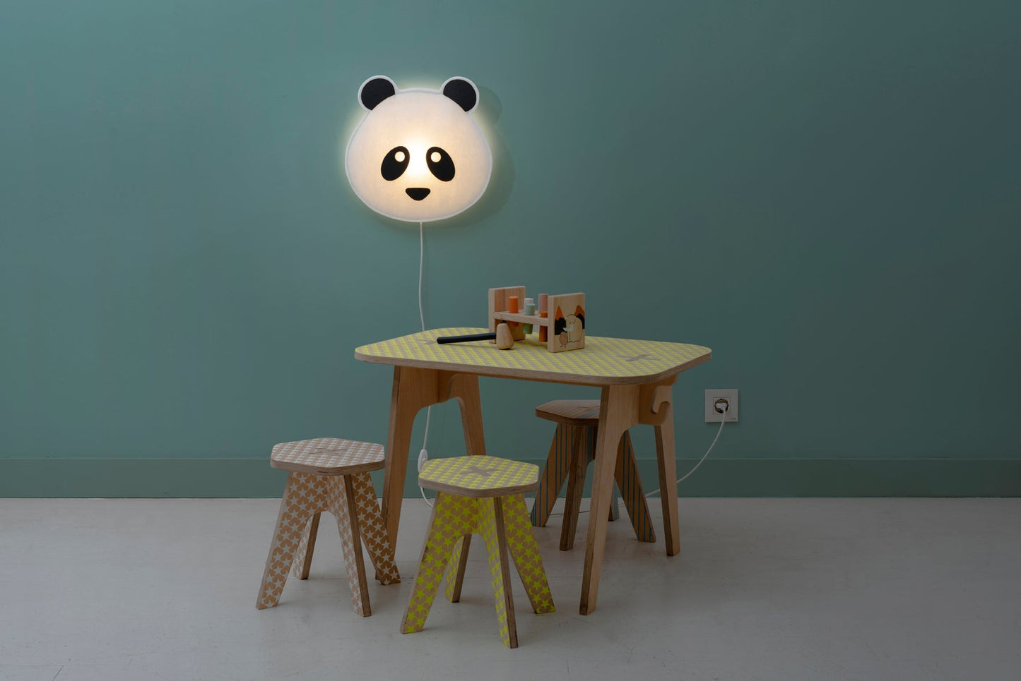 Ένα επιτοίχιο φωτιστικό με «μάσκα ζώων» για να το τοποθετήσετε στην κρεβατοκάμαρα ενός παιδιού. LED max 8W, περιλαμβάνεται λαμπτήρας GX53, ελεγμένο CE. Το υλικό είναι κατασκευασμένο από ανακυκλωμένα πλαστικά μπουκάλια.