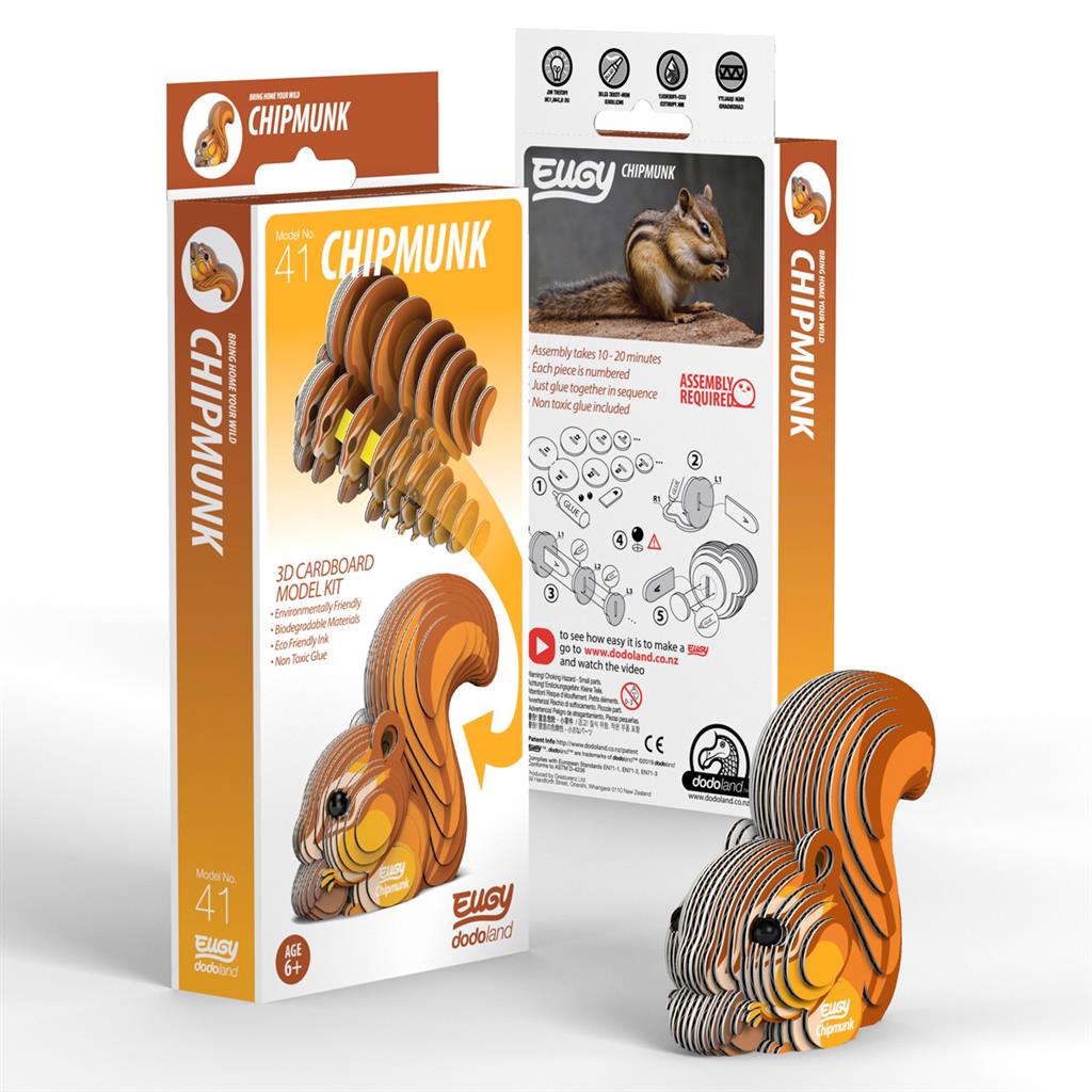 Eugy 3D Modèle: ANIMAL DE LA FORÊT / TAMIA 7.3x3.5x7cm, en carton, en boîte, 6+