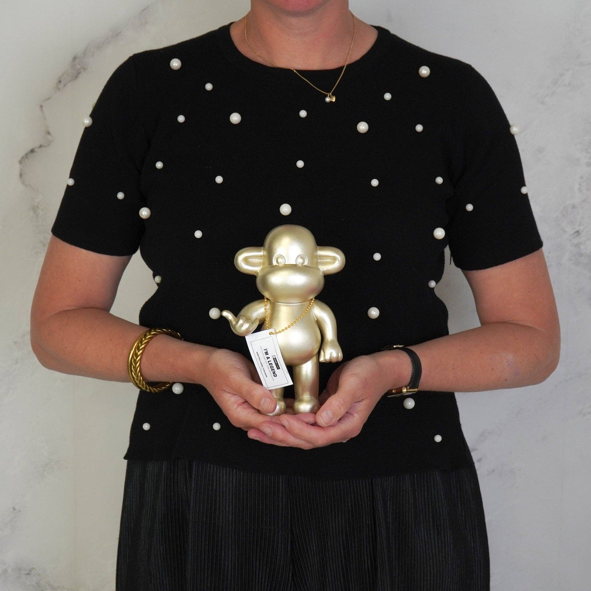 MEET THE LEGEND! The Legend monkey figurine is an original design by Housevitamin. The Legend is strong, independent, and full of fun. Try to knock him down, you won't succeed. Try to make him small, he doesn't care. He's here for one purpose: to have fun, seriously have fun. This monkey statue shows a 'Hang Loose' hand to give you a more relaxed and joyful vibe. Make room for the legend and enjoy the ride together. Relax and let's have some serious fun with the legend! Show your legend: #thelegend.