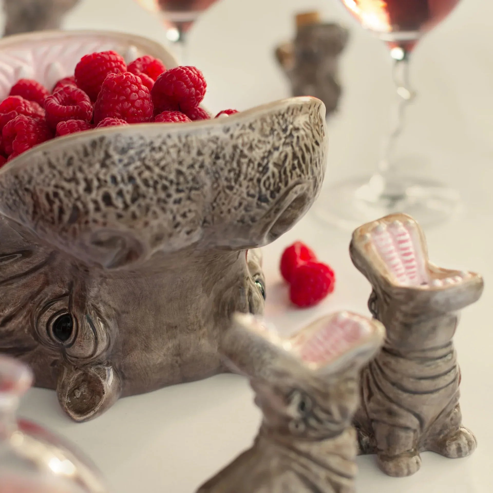 Hay un nuevo miembro de la familia en la ciudad: el cuenco Hungry Hippos. Este llamativo y salvaje espera con la boca bien abierta para devorar tus snacks favoritos y mucho más. Fiel a su nombre, este hipopótamo hambriento tiene espacio para frutas, bocadillos, joyas, llaves y otros pequeños accesorios. La forma detallada y los colores cálidos hacen de este cuenco de cerámica un verdadero punto de atracción y un iniciador de conversación.