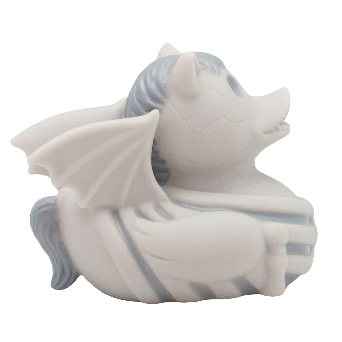 Sin plumas, pero con huesos aterradores, este caballo calavera vuela por el cielo. Con sus alas puede viajar a cualquier destino y buscar un nuevo maestro. Porque es mucho más divertido divertirse y crear nuevas historias de fantasmas. Este aterrador pato encaja en cualquier colección de terror.