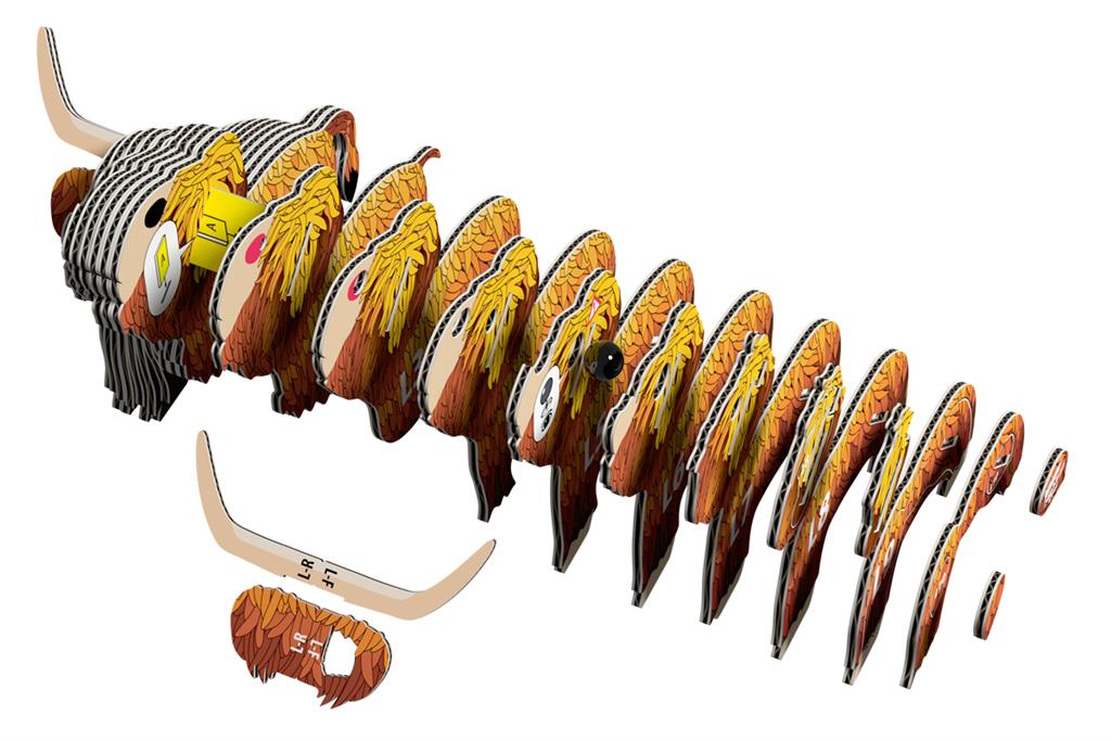 Eugy 3D Modèle: ANIMAL DE FERME / VACHE DES HAUTES LANDES 7,34x6,9x6,4cm, en carton, en boîte, 6+