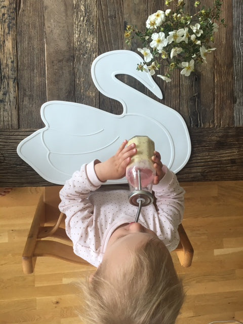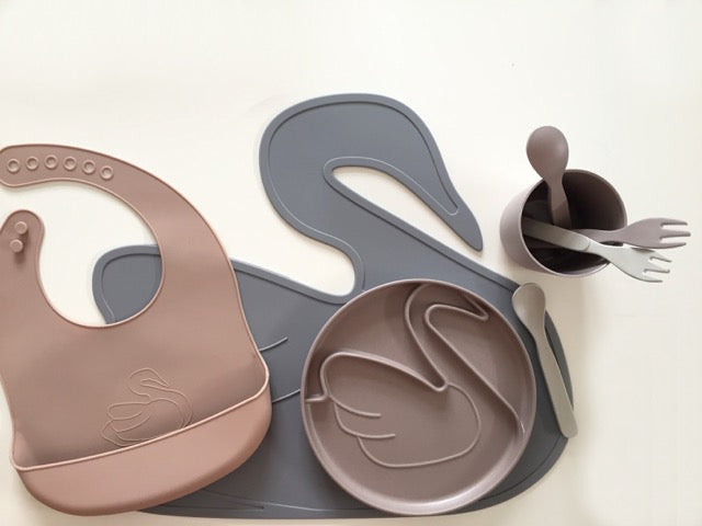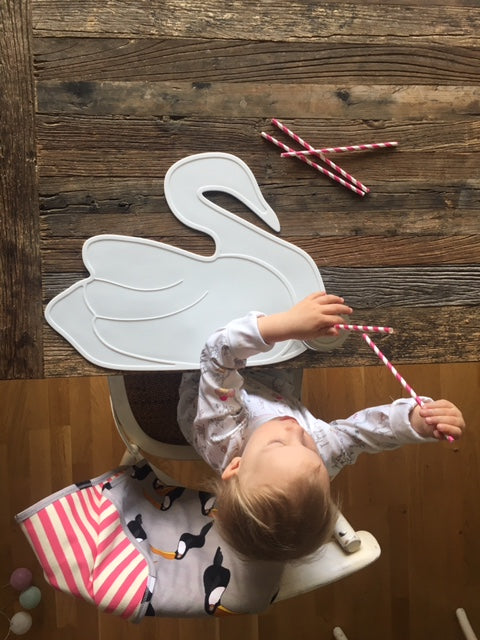 En dekkebrikke i silikon for hval eller svane. Enkel å rengjøre i oppvaskmaskinen.