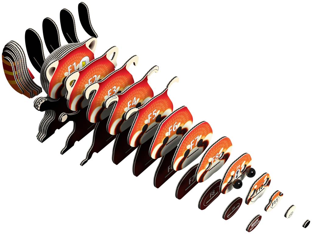 Nos produits sont conformes à 100% aux normes de sécurité internationales (EN71-1,2,3 et CPSIA). Un pack EUGY contient 7 cartes plates avec des pièces numérotées individuellement, toutes prêtes à être assemblées.