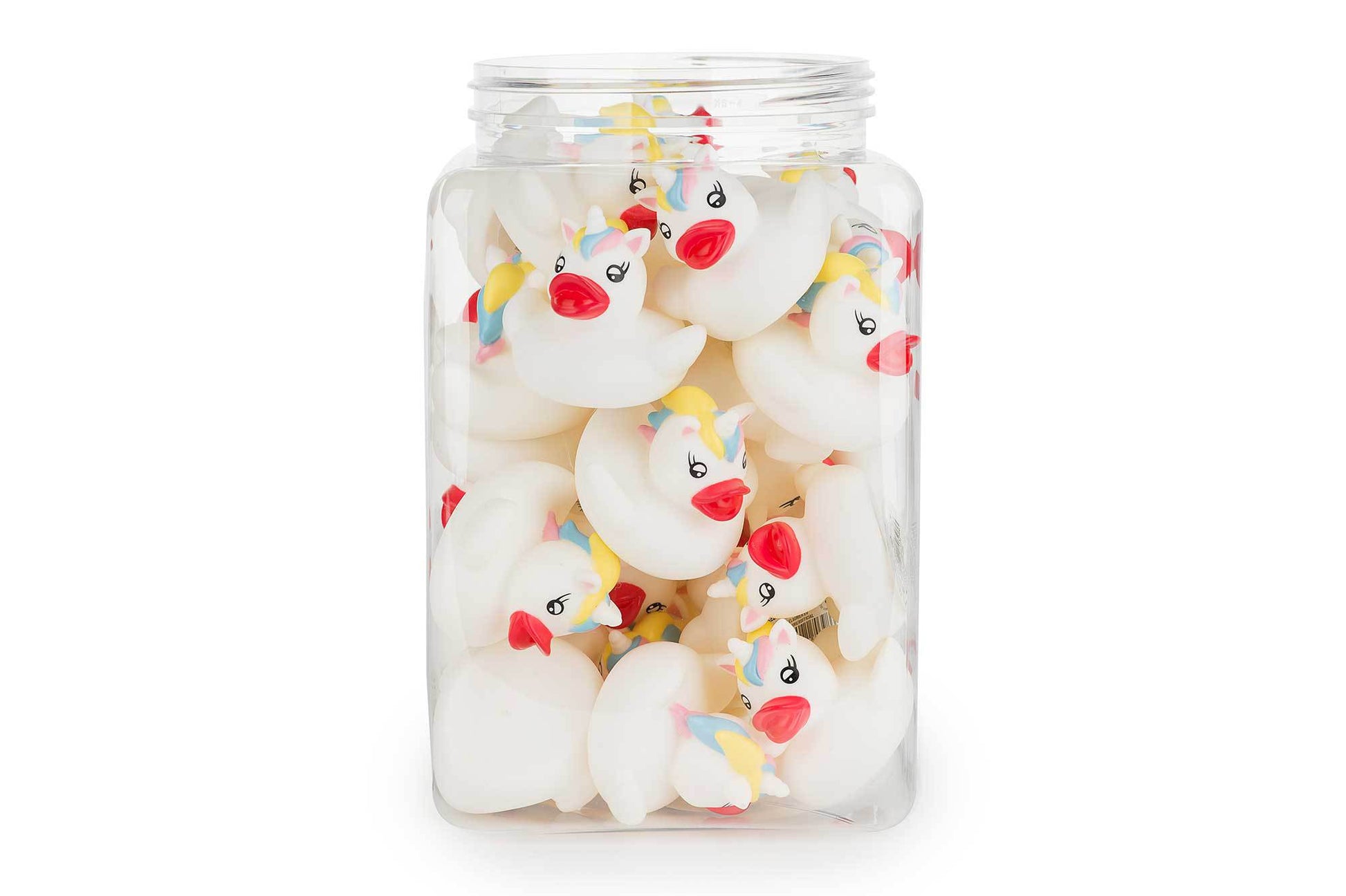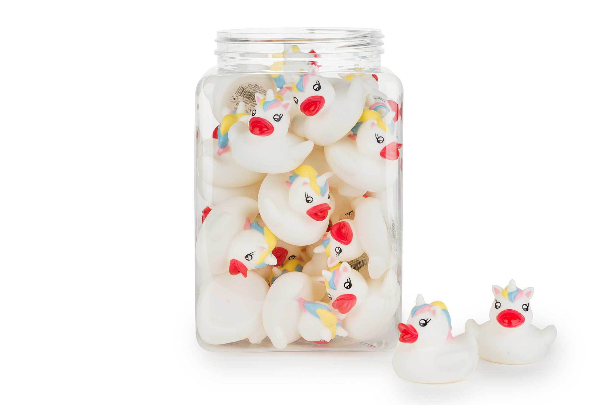 Denne lille hvite anda med sin regnbuemanke og horn er utvilsomt den mest magiske i samlingen! 'Uniduck' liker å skinne i alle farger i badevannet og ser 'kul' ut i alle rom. En skikkelig badende Enhjørning!