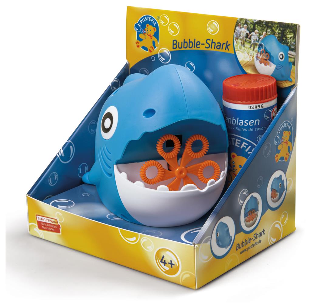 Pustefix: MACHINE à BULLES REQUIN, avec 70ml de liquide Pustefix, fonctionne avec des piles (3x AA non incluses), dans une boîte ouverte, 4+