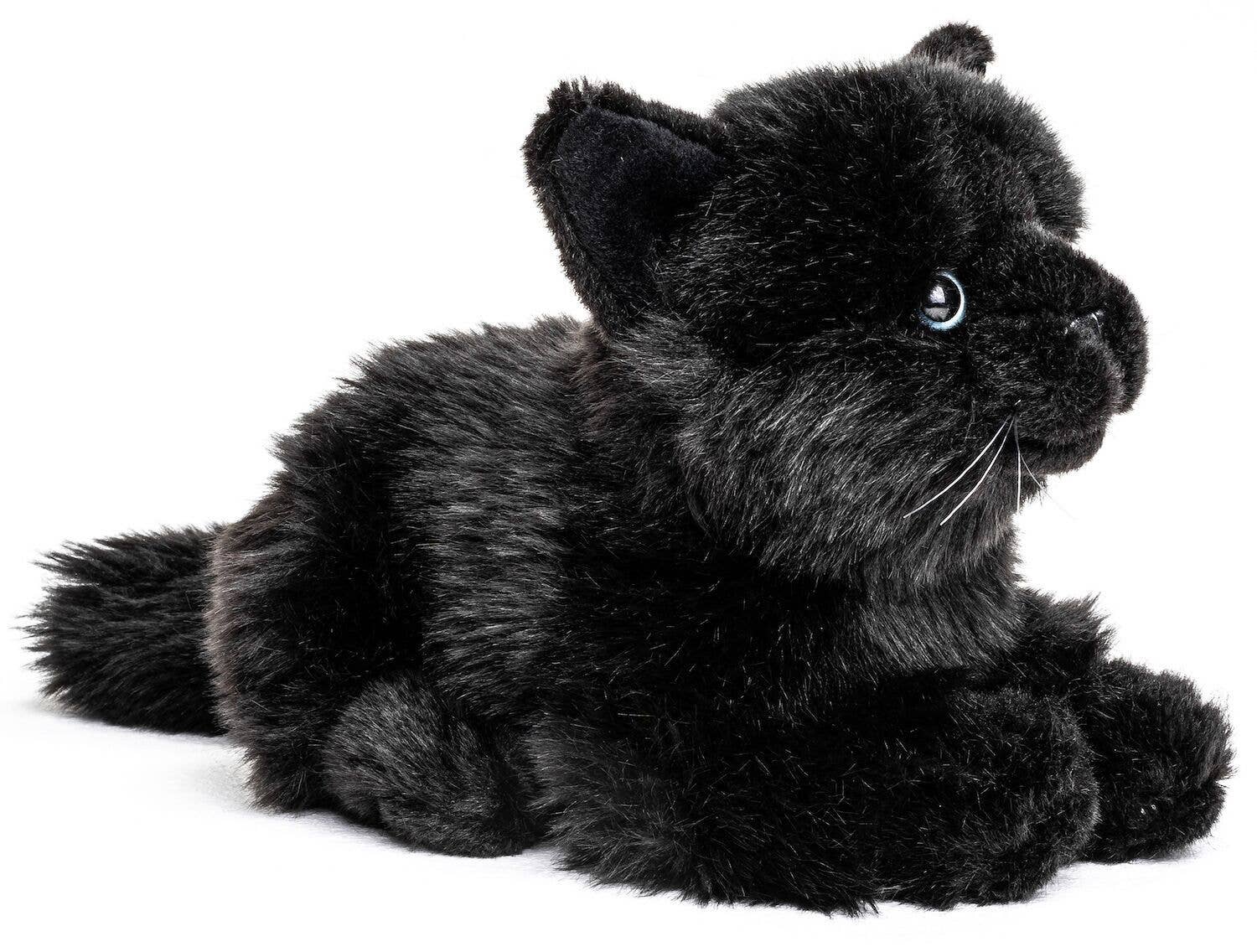 NOM DU PRODUIT : chat couché (noir) - 20 cm (longueur) - Mots-clés : chat, chaton, animal de compagnie, peluche, peluche, doudou