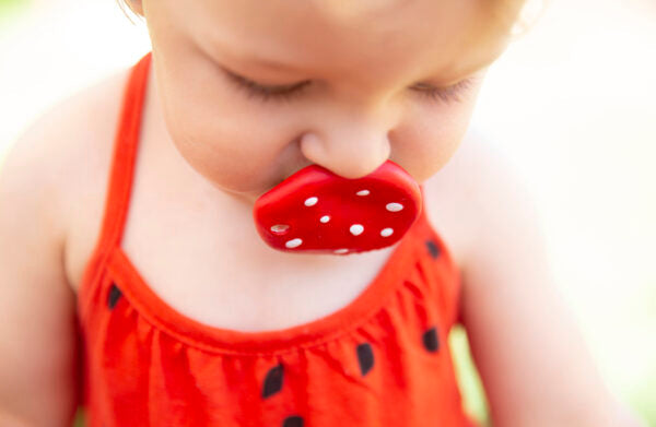 Spotty the Mushroom er Oli&Carols nye soppformede tannleke for babyer. Denne lette, ergonomiske designen er perfekt for dem å holde og tygge med letthet. Denne babybiteleken har en rekke teksturer for å berolige de smås tannkjøtt og er lett å henge på en smokkholder og ta med deg overalt!