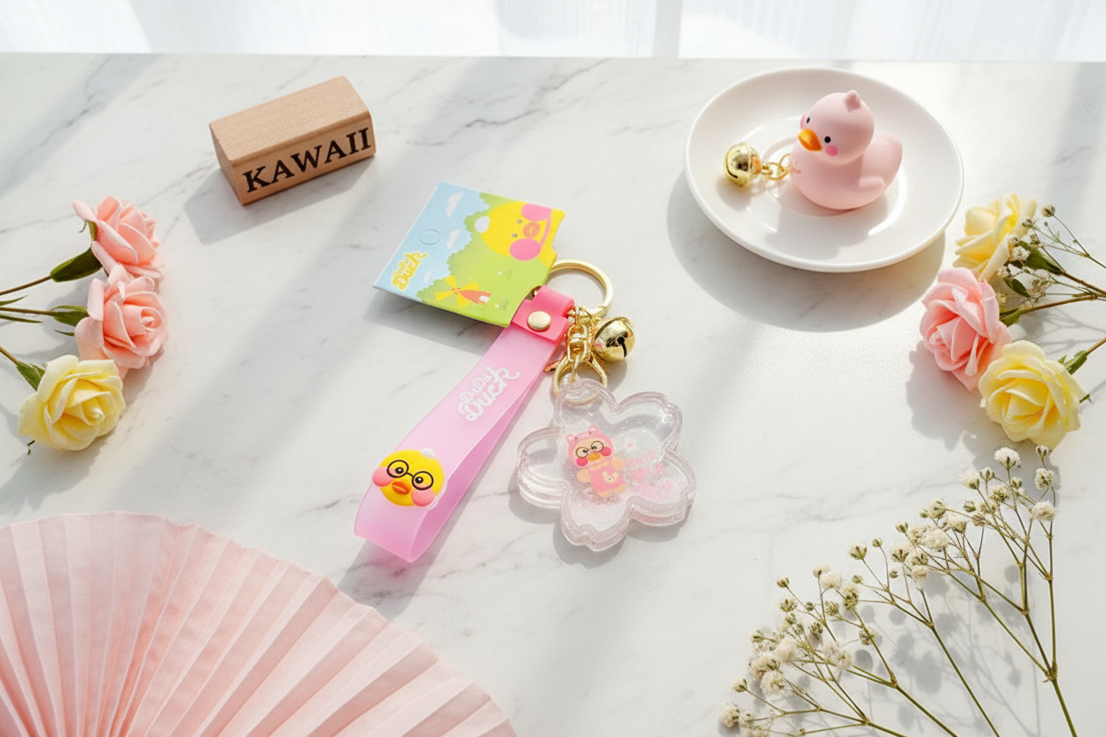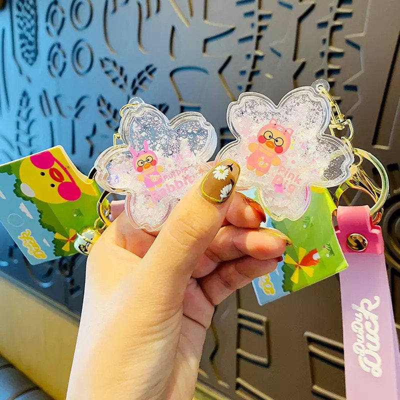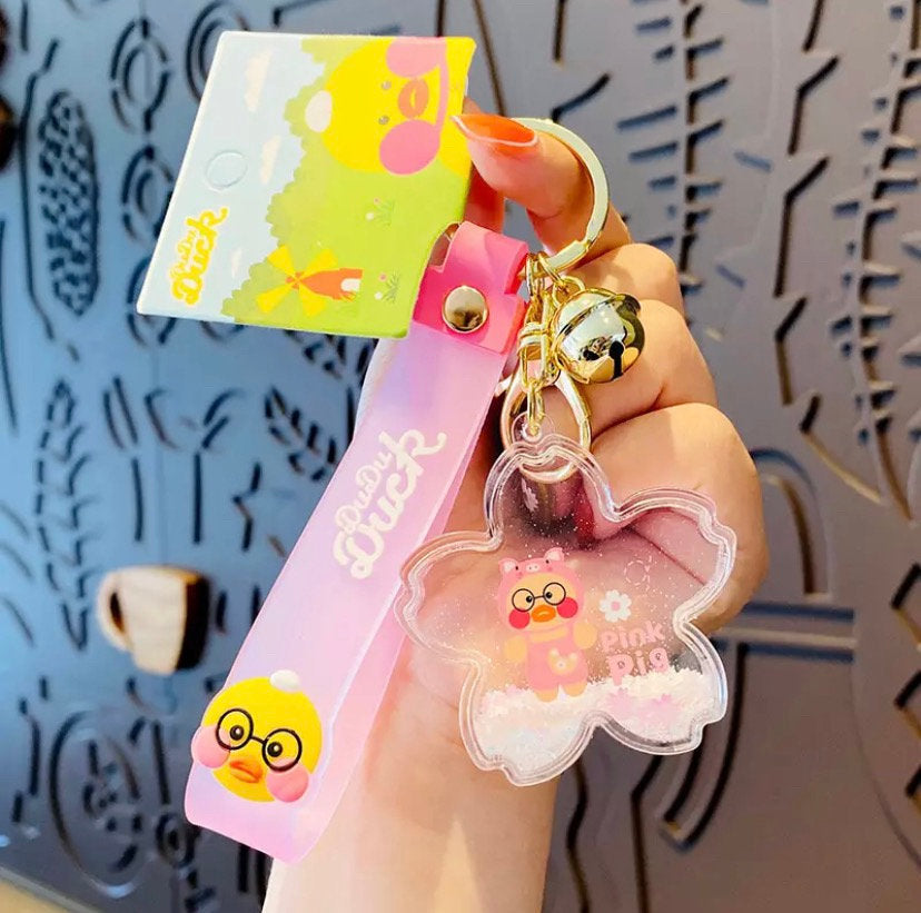 Blok do kluczy z kaczką DuDu w przebraniu świni z butelką w kształcie kwiatu wiśni 🌸