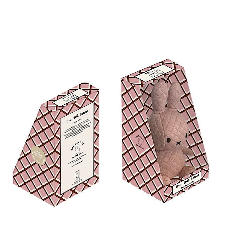 Miffy dans une boite avec un tissu matelassé dans trois couleurs neutre. Qui n’en veut pas une … ?