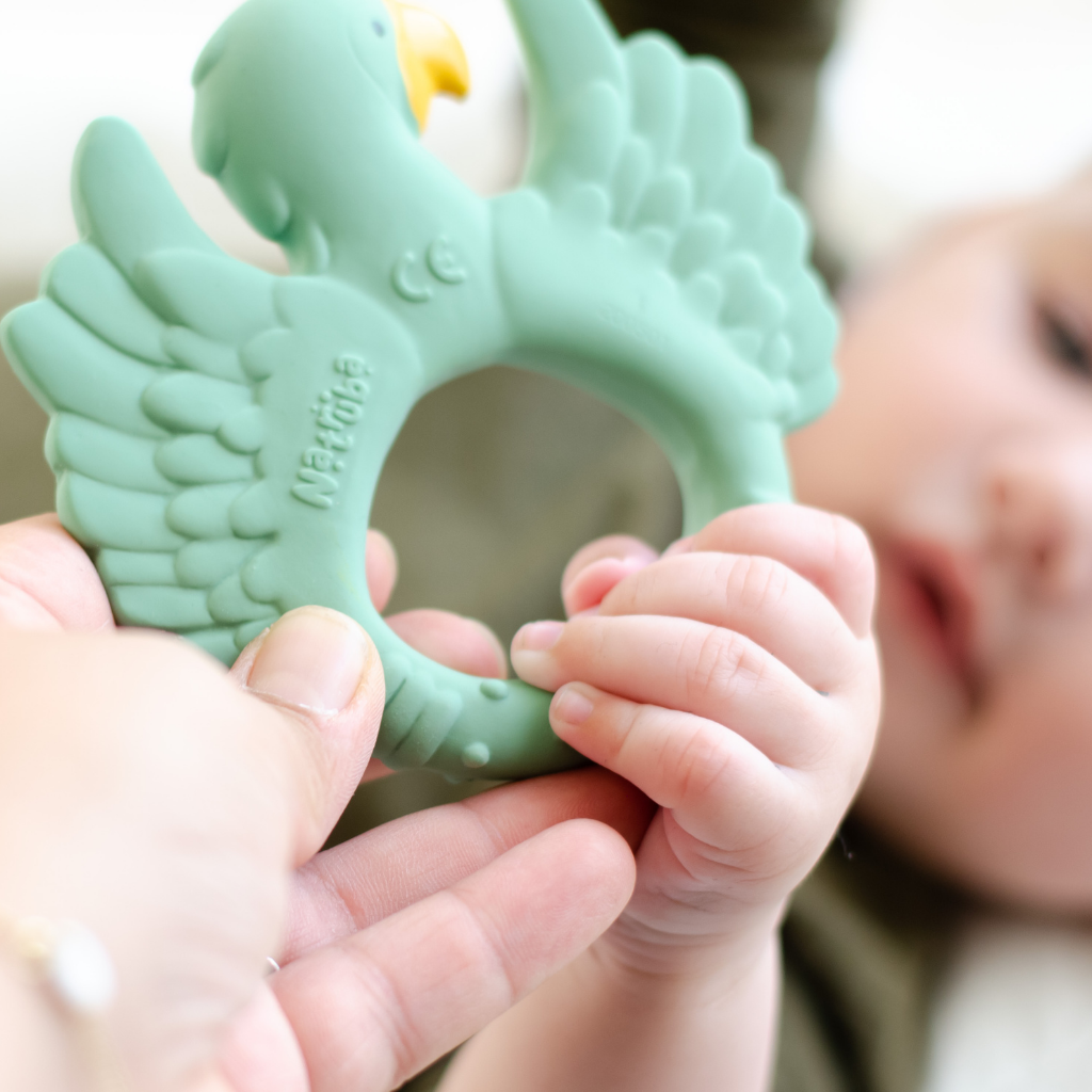 Le perroquet Natruba - couleur édition limitée - est facile à saisir pour les petites mains et un soulagement parfait pour les gencives douloureuses. Le perroquet a différentes surfaces pour le jeu sensoriel et possède à la fois du caoutchouc naturel souple et dur pour satisfaire toutes les étapes des gencives douloureuses. La couleur vive stimule la vue de votre enfant.