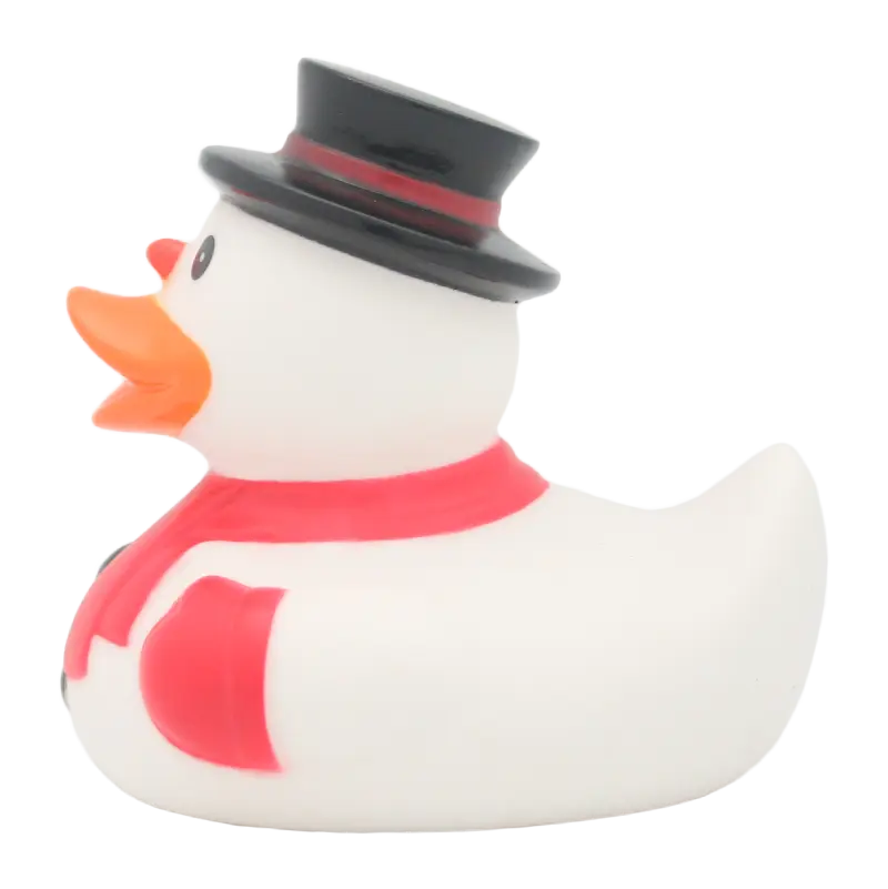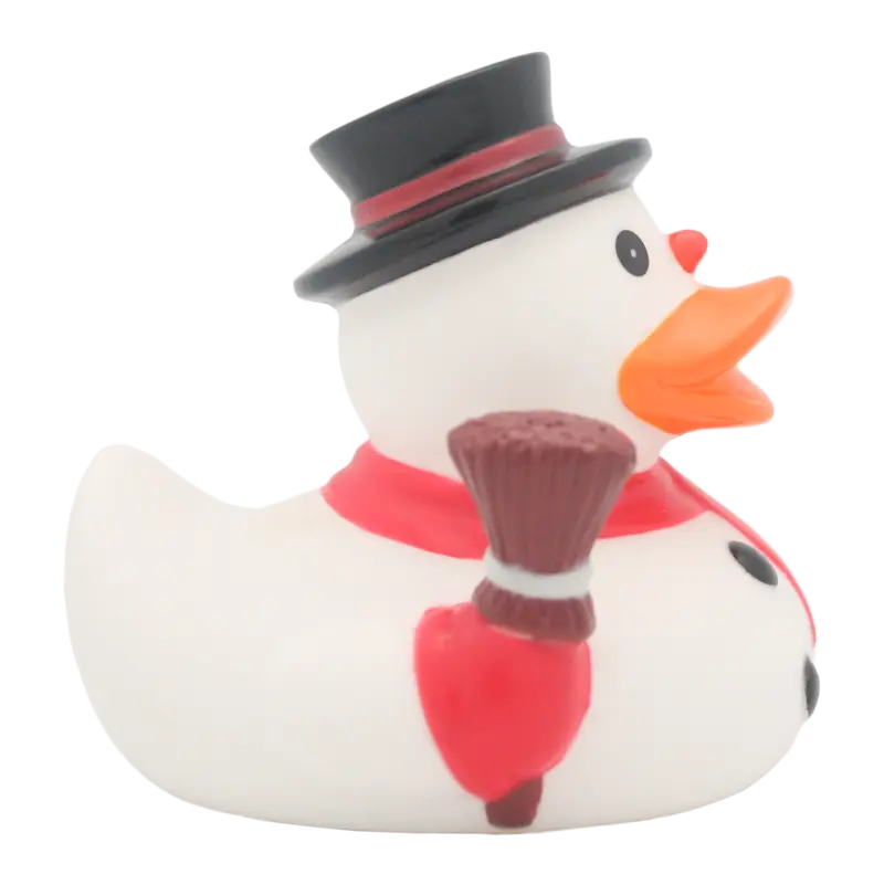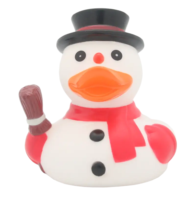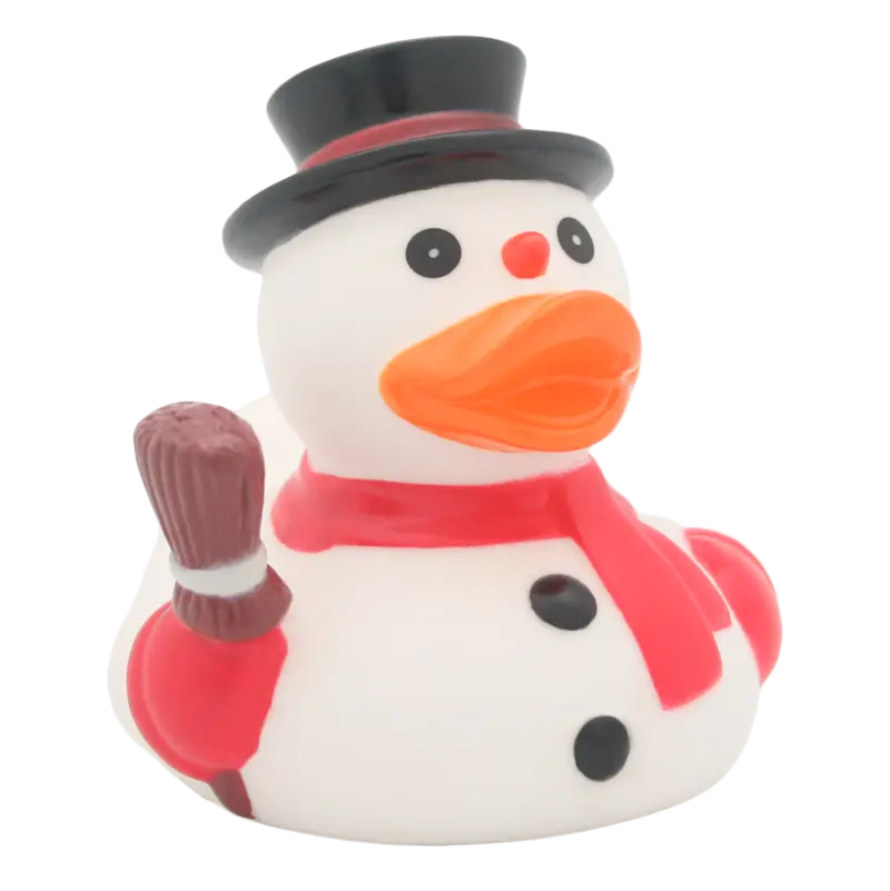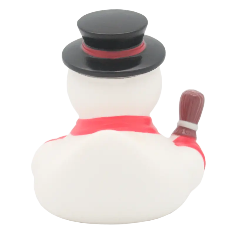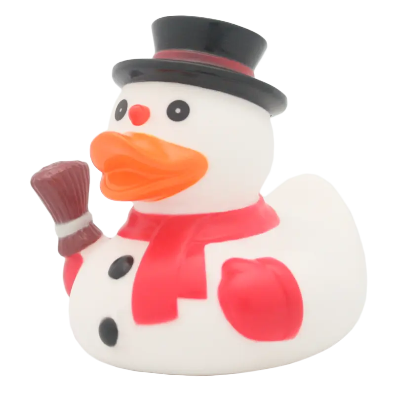 Ne fond pas - pas même dans un bon bain chaud lors d'un hiver froid: le canard de bonhomme de neige. Ce canard cool est équipé d'une carotte comme nez, d'un foulard et d'un balai et attend déjà avec impatience le prochain combat de boules de neige - ou un combat d'eau dans la baignoire.