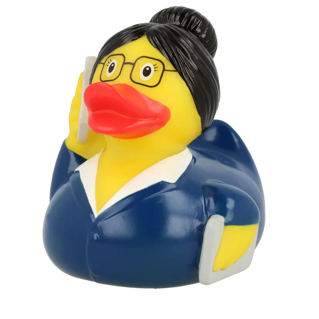 Ce canard sait ce qui se passe sur le marché! Vêtue d'un tailleur élégant et équipée des derniers appareils électroniques, elle sait comment vendre, acheter et vendre n'importe quoi. Vous voulez entendre son indice quotidien?