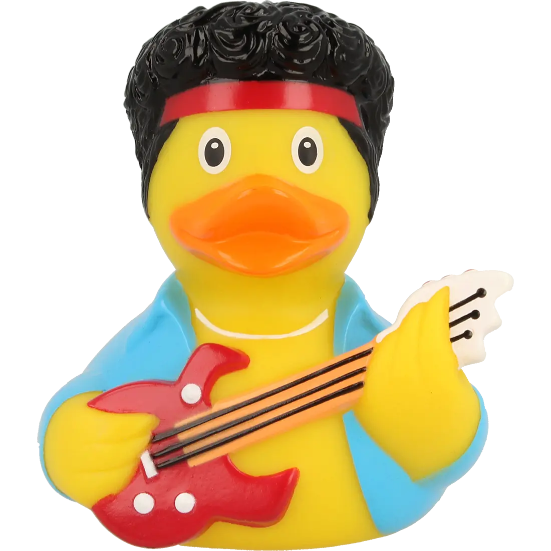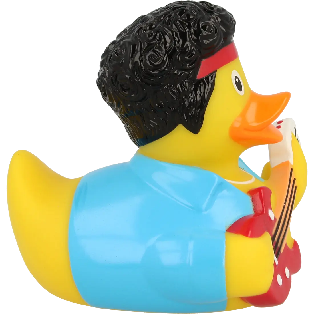 C’est le slogan du canard Rockstar! Coiffure sauvage, chemise décontractée et guitare électrique rouge vif traduisent cette devise et font danser toute votre collection de canards!