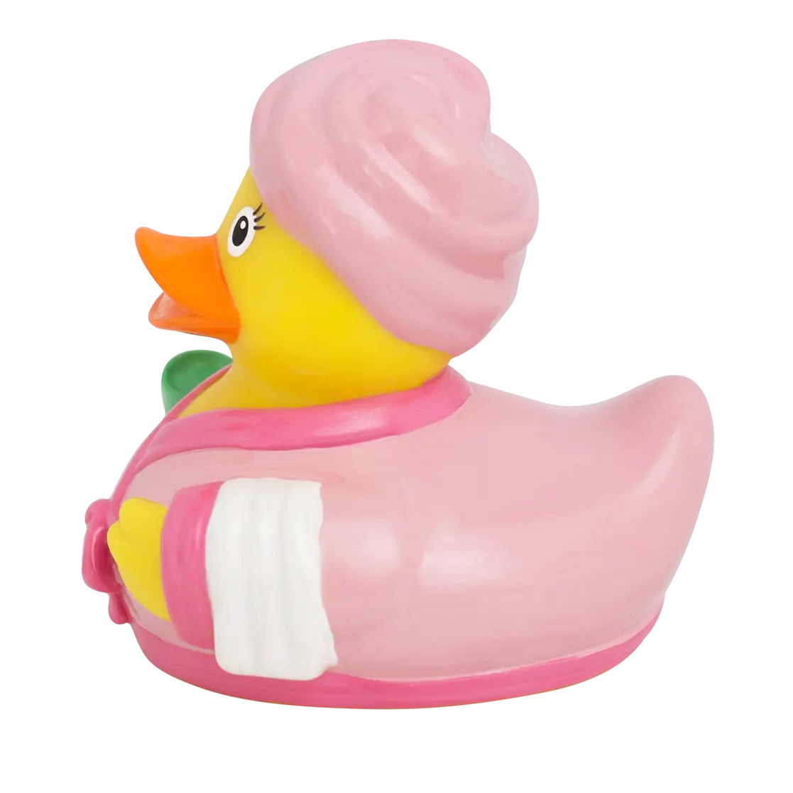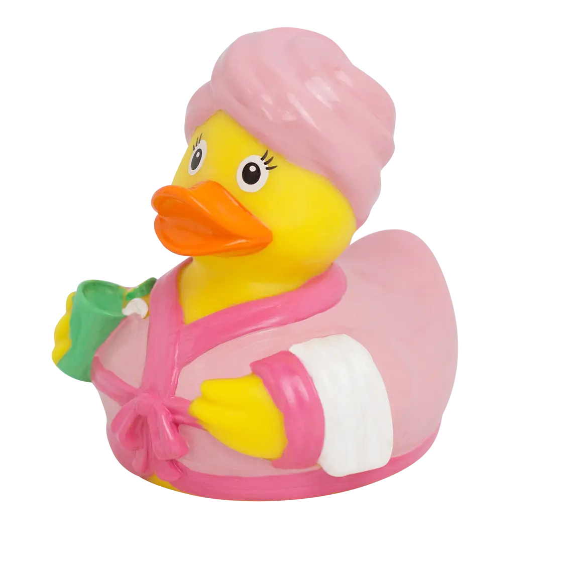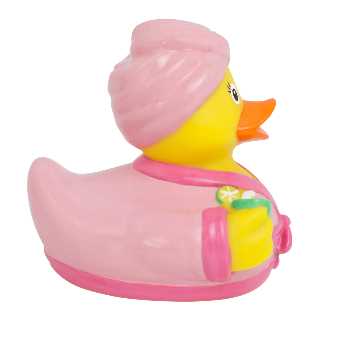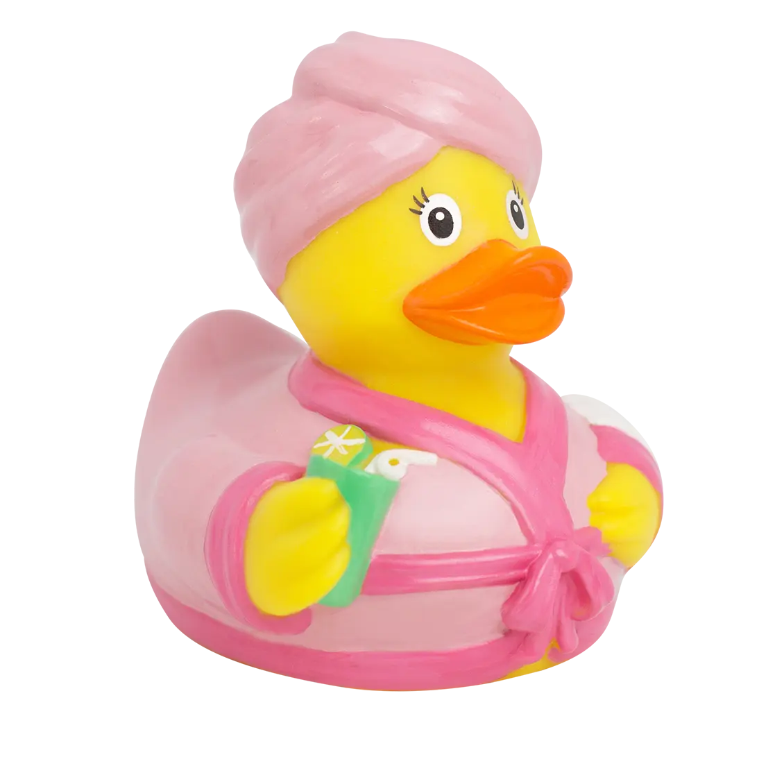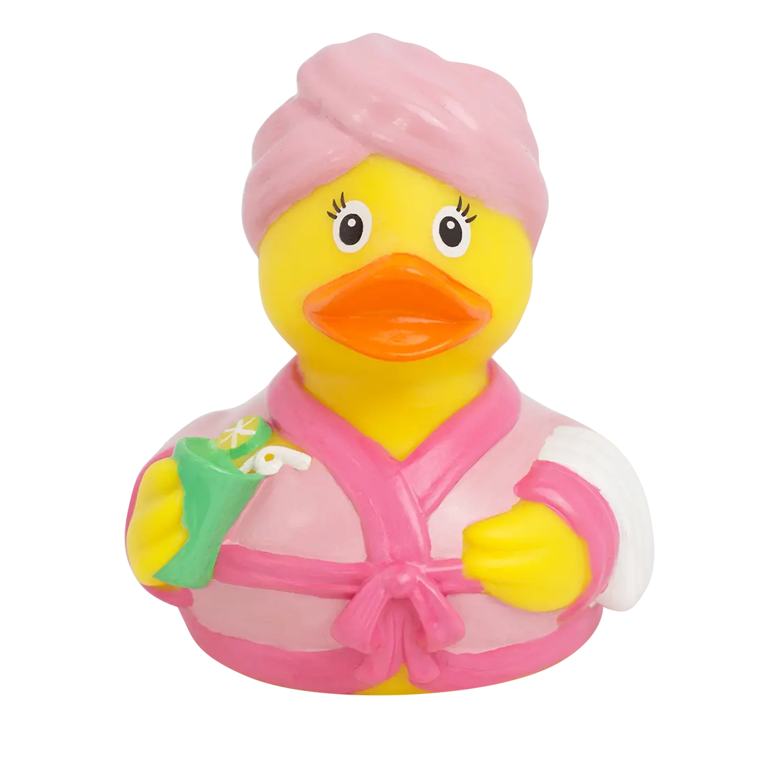 La détente sous sa forme la plus douce: serviette sur la tête, smoothie à la main et un peignoir rose, ce canard de bain rose donne à chaque salle de bain une ambiance bien-être. En cadeau, il est parfait en combinaison avec des accessoires de bain, des bougies, des bombes de bain ou un bon pour du bien-être!