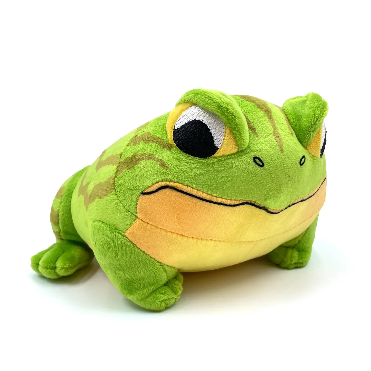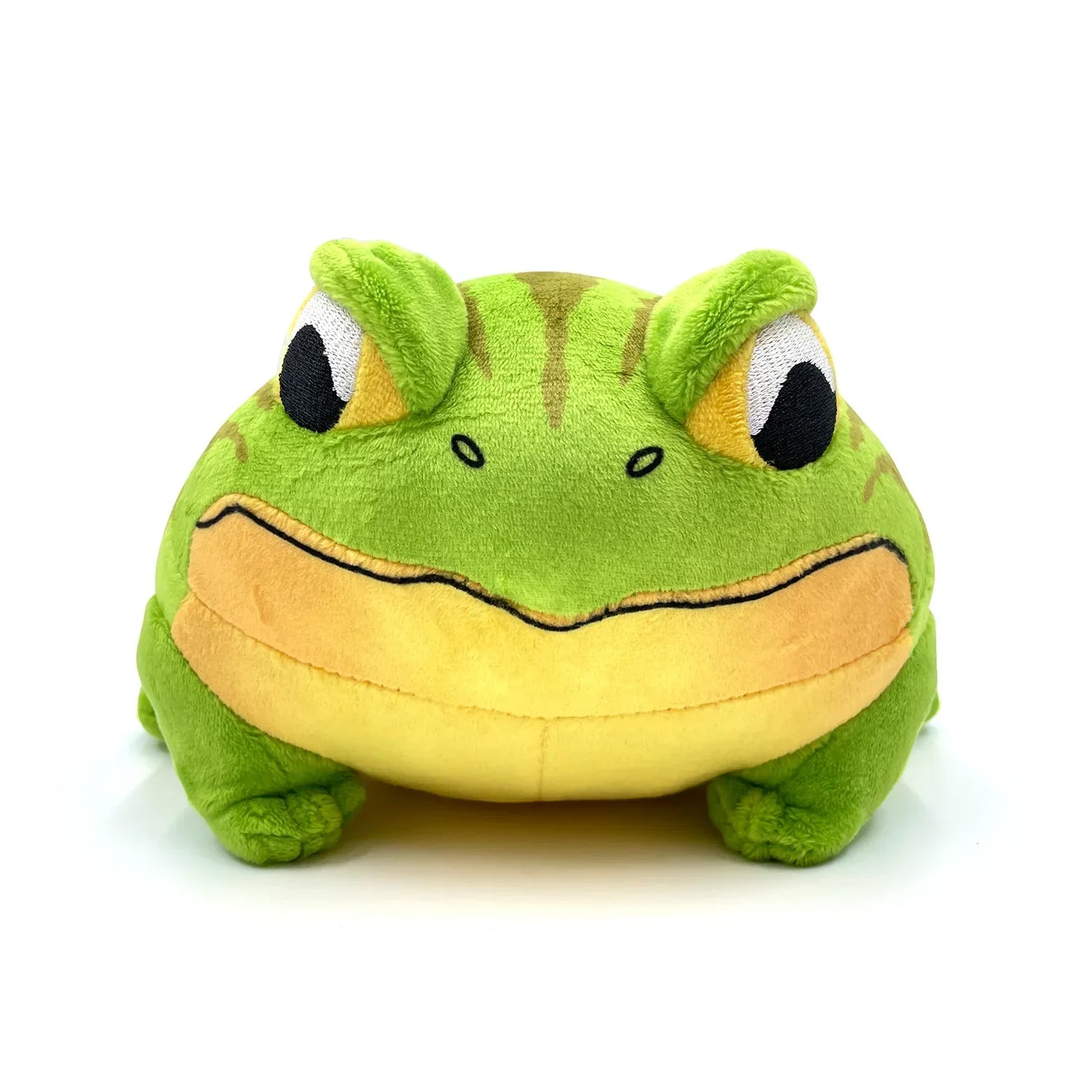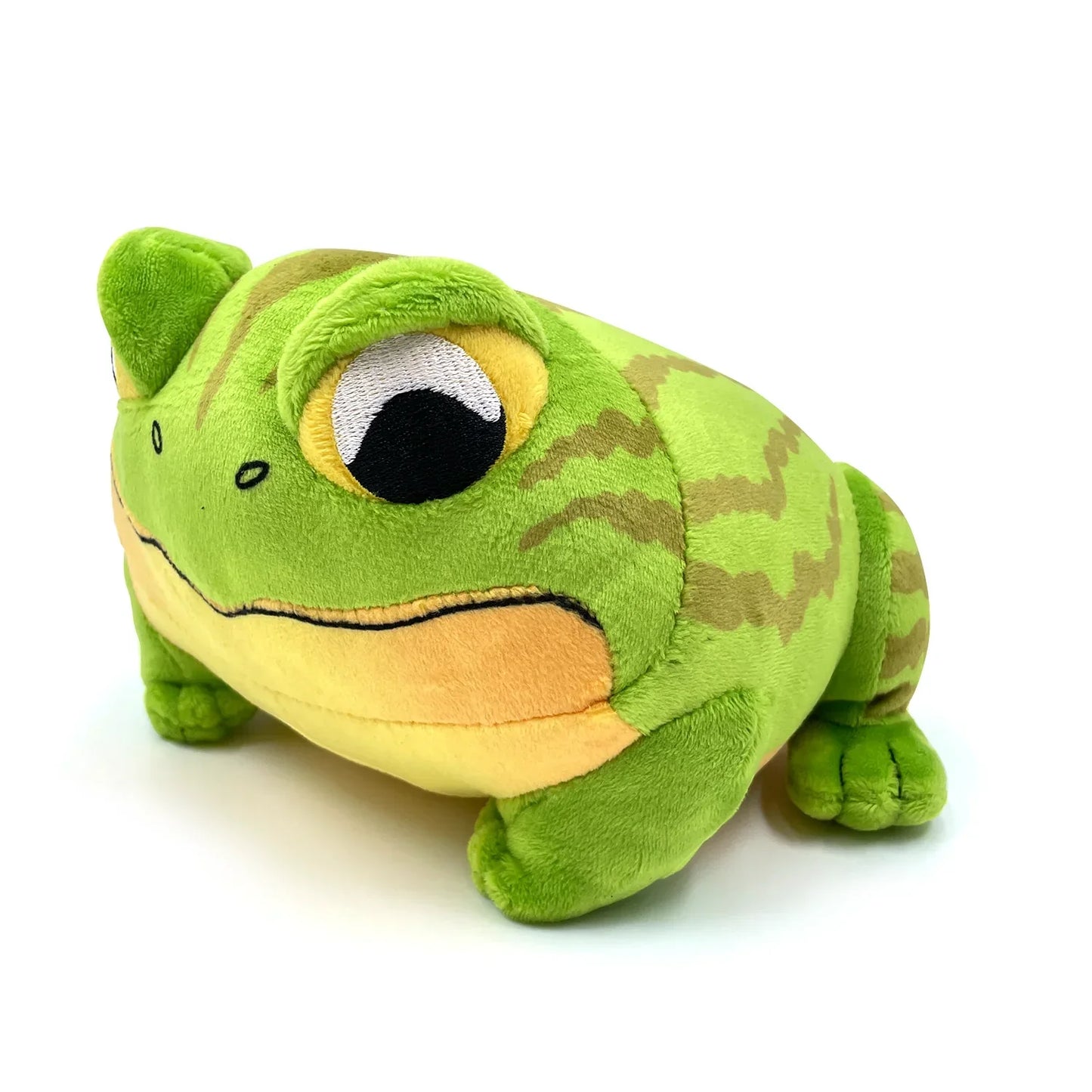 Georgie fait sa glorieuse entrée ! Ce magnifique spécimen de grenouille taureau africaine saute dans Youtooz à un spongieux de 5,5 pouces de haut et 9 pouces de large. Ses quatre pattes s'écartent d'un corps vert doux marqué de stries vert foncé distinctes, tandis que son ventre est un mélange de tons dorés. Ses yeux noirs scintillants vous fixent remplis d'une sagesse que lui seul peut divulguer au-dessus des lèvres de grenouille pincées qui retiennent un monde de perspicacité. Cette peluche est emballée jusqu'aux coutures avec du coton 100% PP et est faite d'un matériau minky sublimé, absolument parfait pour câliner ou être le meilleur compagnon de zoo !