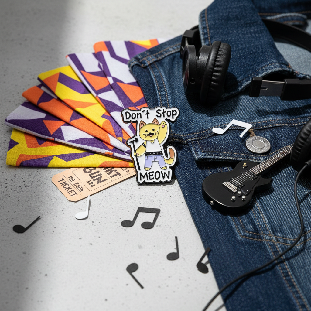 Broche “Don’t Stop Meow” – Le pin’s parfait pour les fans de chats et de rock