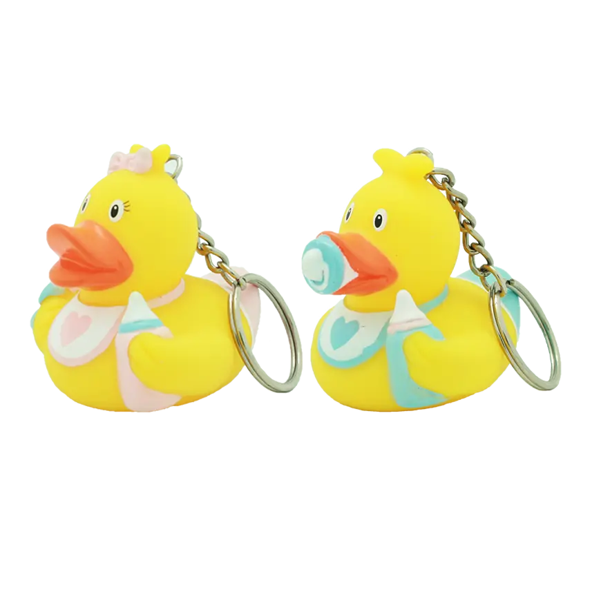 Une jolie progéniture de canard en guise de porte-clés: équipée d'un bavoir, d'un biberon et d'une couche-culotte, ce canard bébé est tout simplement adorable et un cadeau parfait pour ceux qui viennent de devenir (grands) parents.