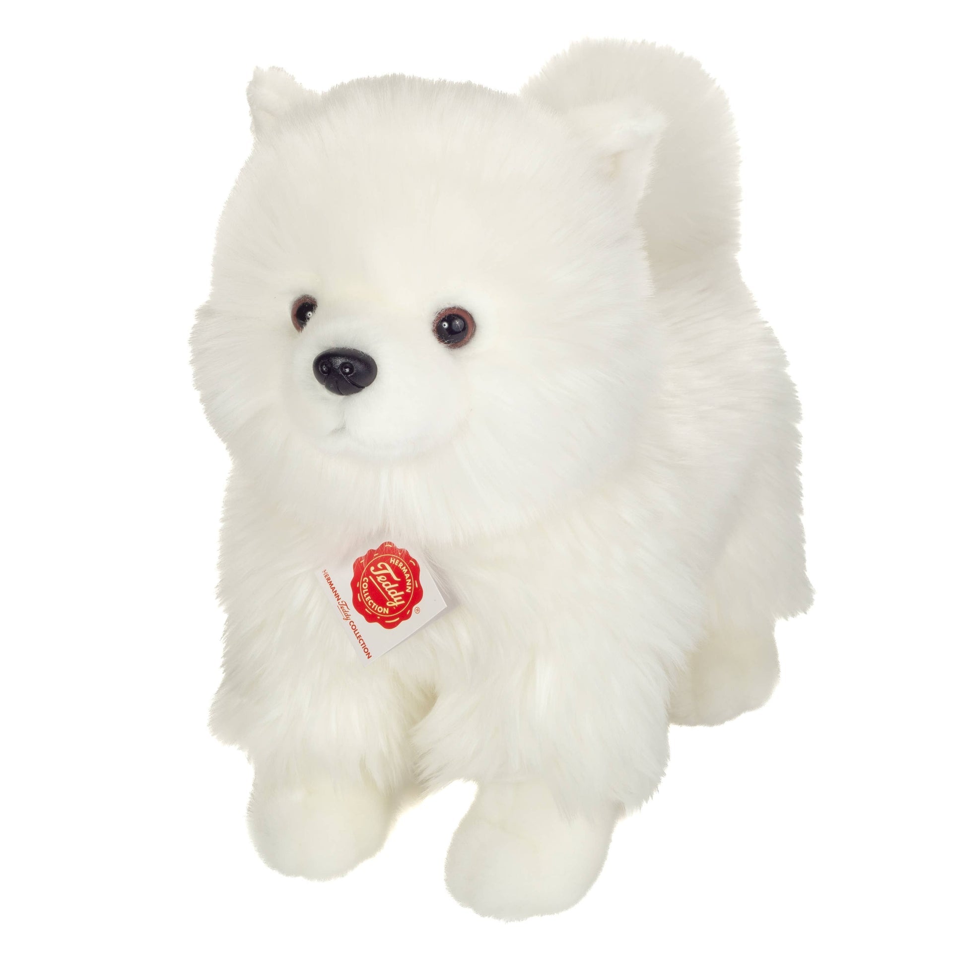 O spitz anão de 35 cm de altura da coleção Hermann Teddy tem uma aparência elegante graças ao seu pêlo branco como a neve. É uma pessoa carinhosa, inteligente e alegre que cria bom humor no quarto das crianças ao longo do dia. Seu caráter brincalhão não deixa espaço para o tédio, mas com seu casaco macio e aconchegante, ele está sempre pronto para um longo aconchego.