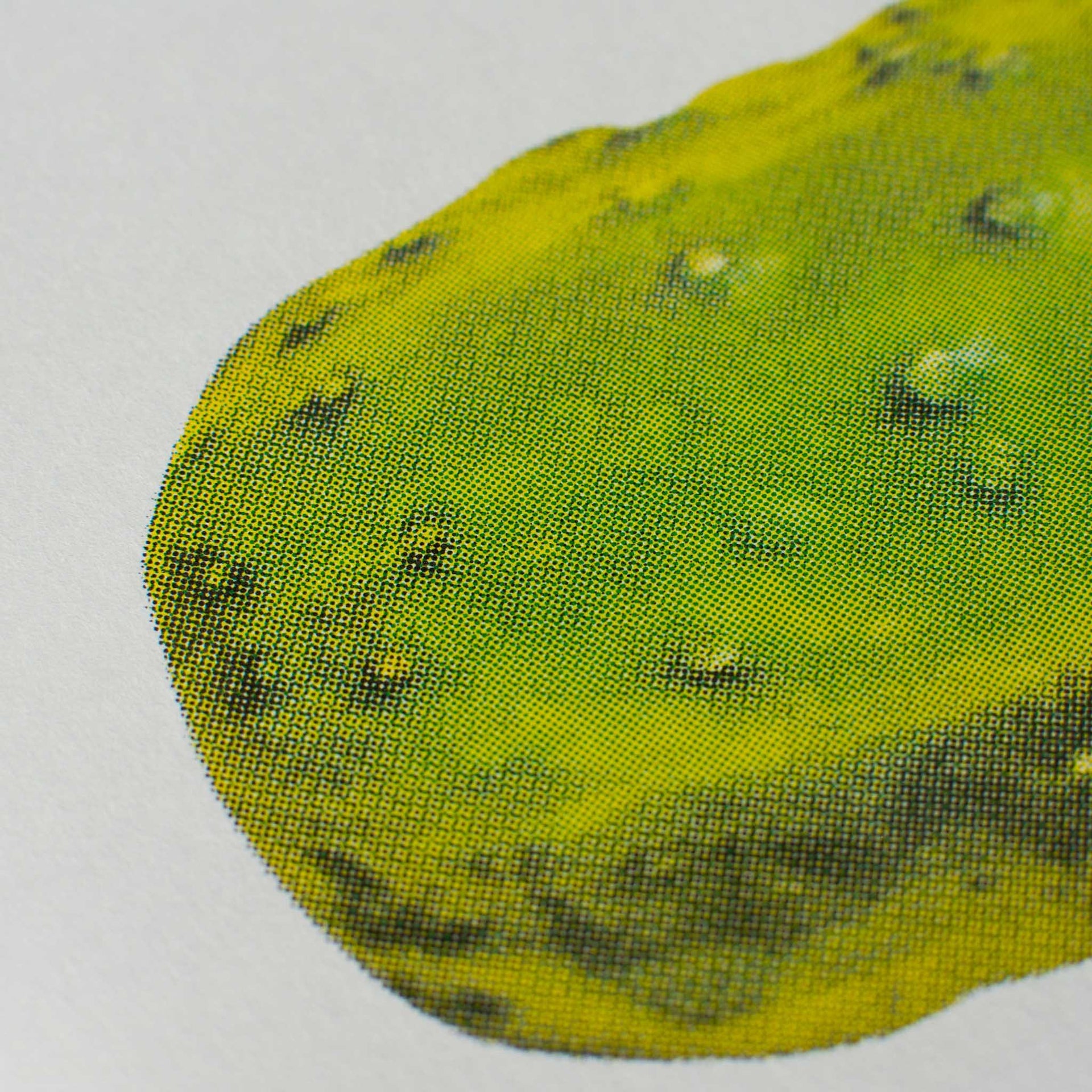 Toate printurile artistice „Food” sunt minimaliste, dar pop și imprimate pe hârtie brută necretate (Munken Pure Rough 170g) pentru o senzație deosebit de de înaltă calitate. Toate printurile sunt vândute în format DIN A3 și fără ramă. Risografia este considerată unul dintre procesele de imprimare cele mai ecologice și eficiente din punct de vedere energetic - similar cu serigrafia. Cernelurile se bazează pe un amestec natural de ulei de soia și apă și se pot estompa foarte puțin. Ușor offset și aplicarea culorilor variabile sunt dovada unei lucrări manuale reale și fac fiecare imprimare unică.