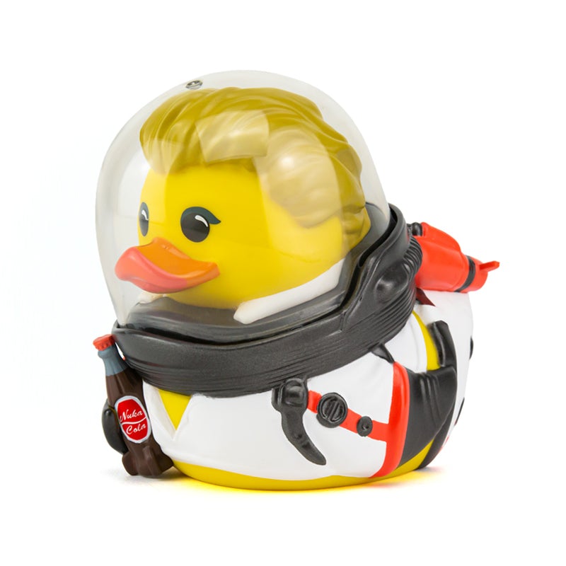 După ce a călătorit prin pustiul, Nuka Cola Girl își pune ochii pe iazul cu rațe. Nu o poți confunda cu costumul ei rachetă și casca. Această piesă de colecție cu licență oficială face parte din linia TUBBZ, o serie foarte de colecție a personajelor tale preferate de joc, film, TV și cultură pop sub formă de rață! Cu funcții incredibil de detaliate, este o necesitate pentru fani.