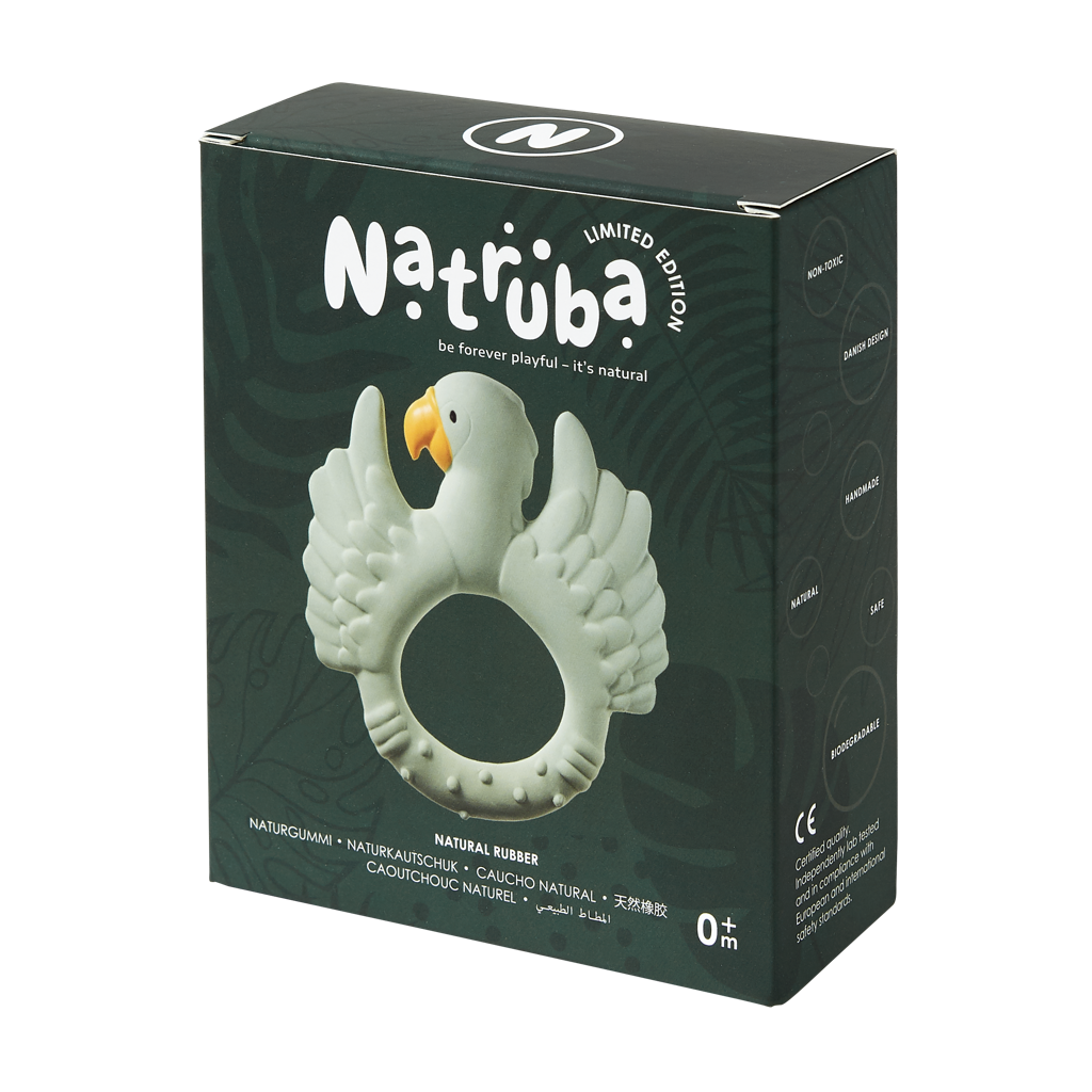 Le perroquet Natruba - couleur édition limitée - est facile à saisir pour les petites mains et un soulagement parfait pour les gencives douloureuses. Le perroquet a différentes surfaces pour le jeu sensoriel et possède à la fois du caoutchouc naturel souple et dur pour satisfaire toutes les étapes des gencives douloureuses. La couleur vive stimule la vue de votre enfant.